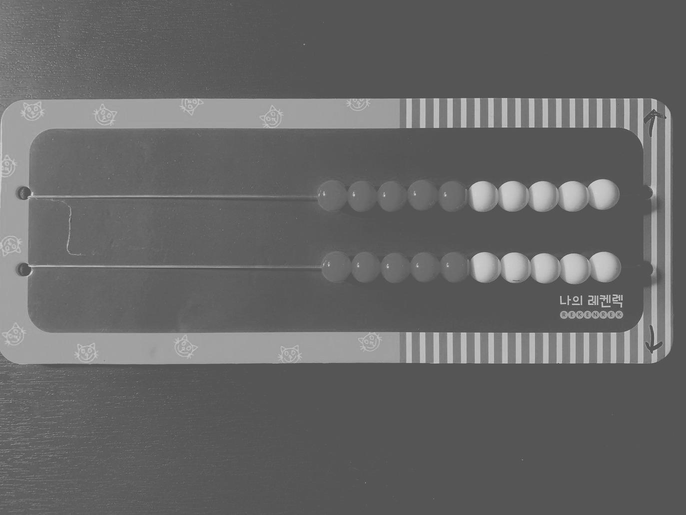 수구슬판(레켄렉) 수구슬판은 이렇게 한 줄에 10개이 구슬, 2줄로 구성된 도구이다.