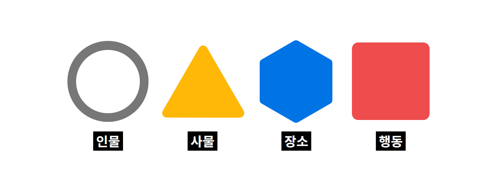 ⬢+■ 조합으로 배경+행위의 의미를 연습할 수 있다.