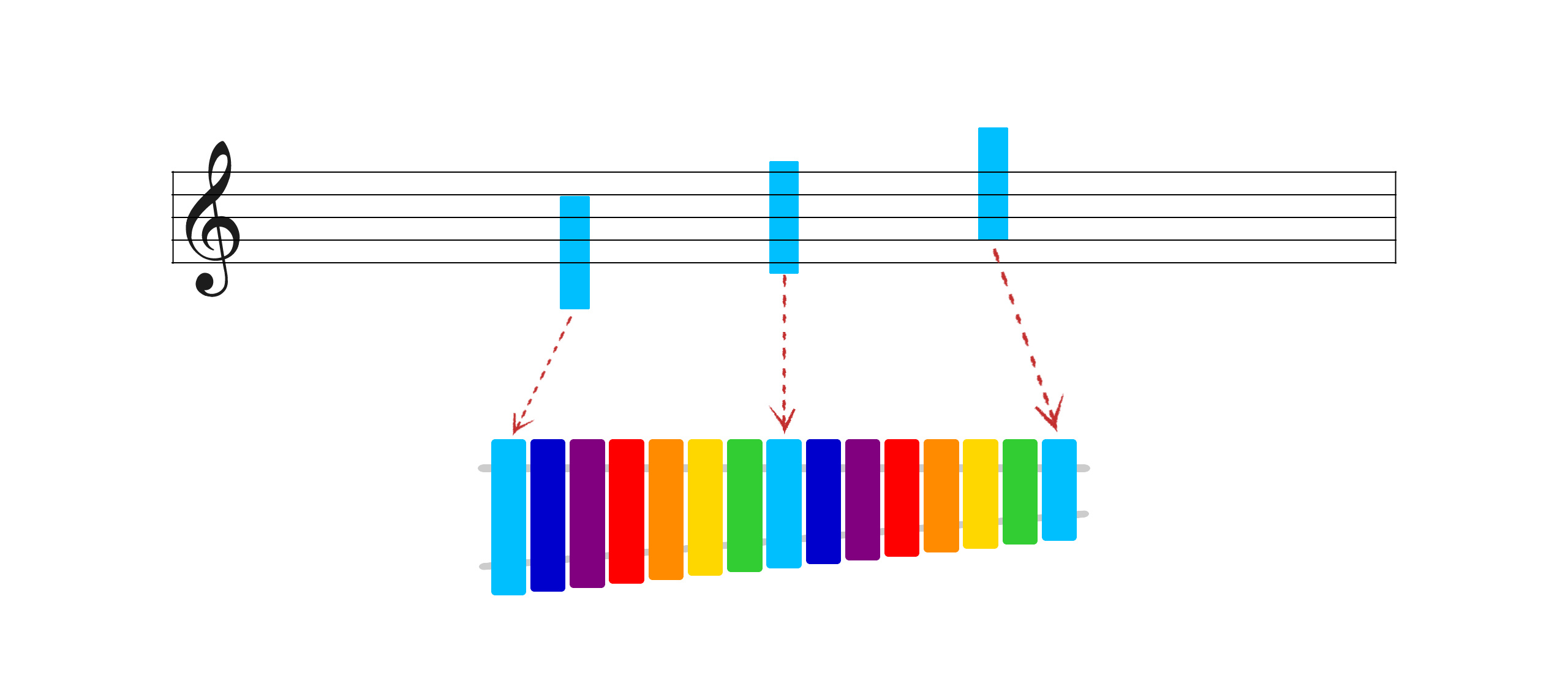 - 사용하는 건반은 아래에 실로폰 건반 그림에 표시되어 있다.