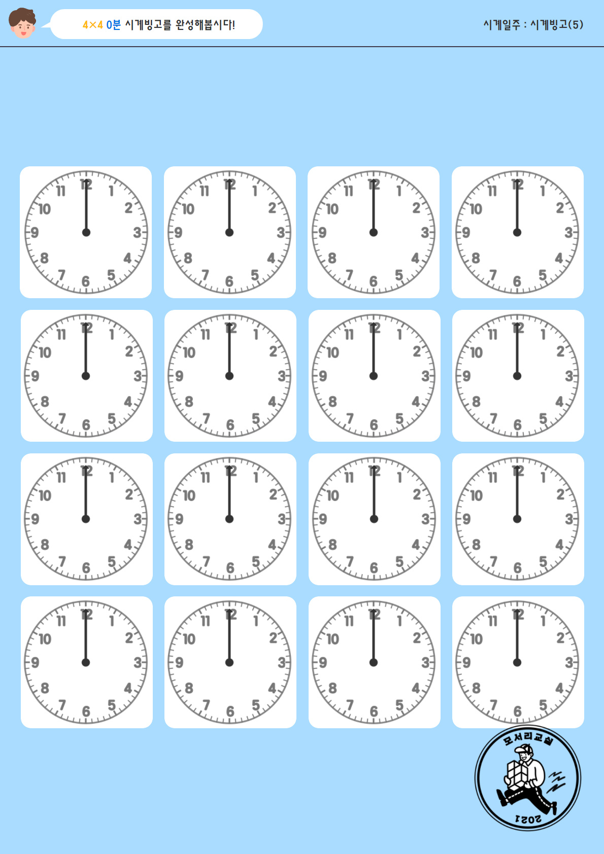#128 시계:시계일주_별책부록(시계빙고)수학/시계일주 2021. 2. 14. 10:19