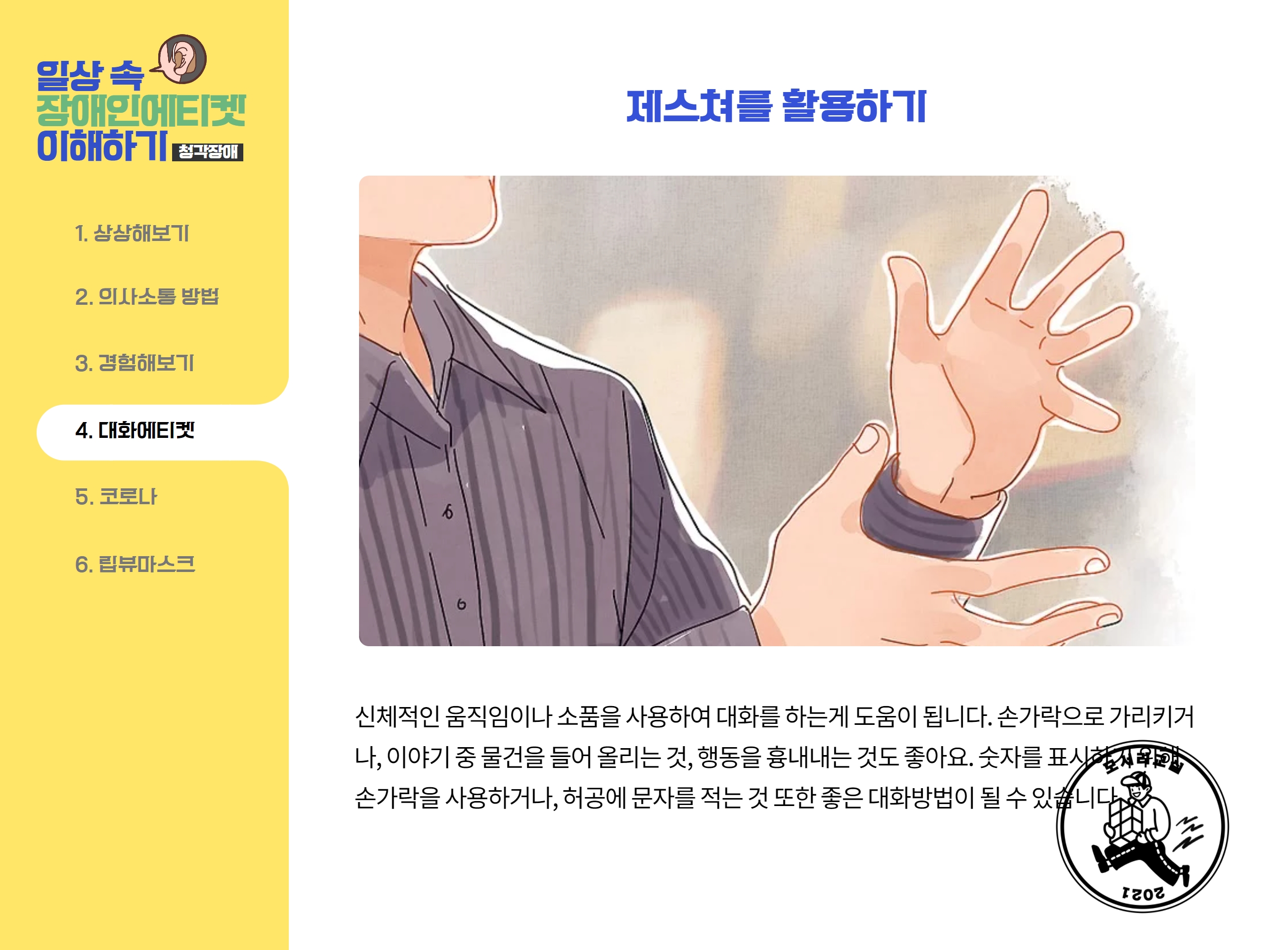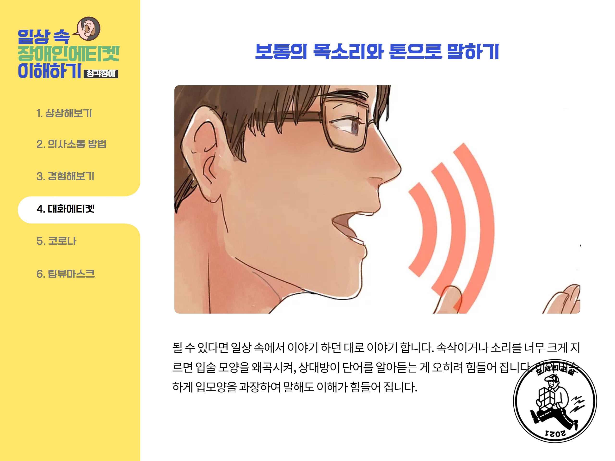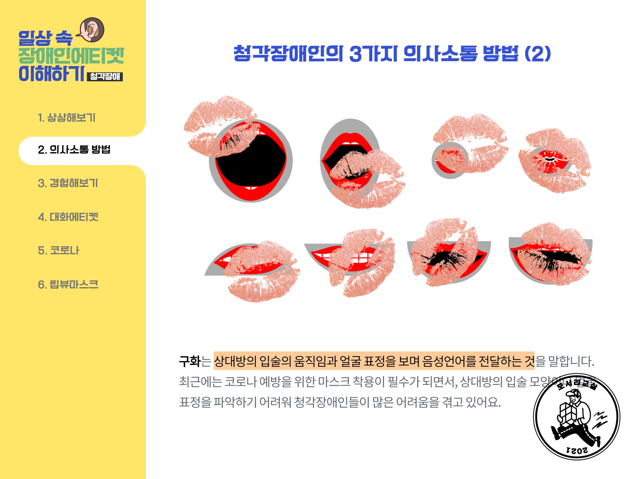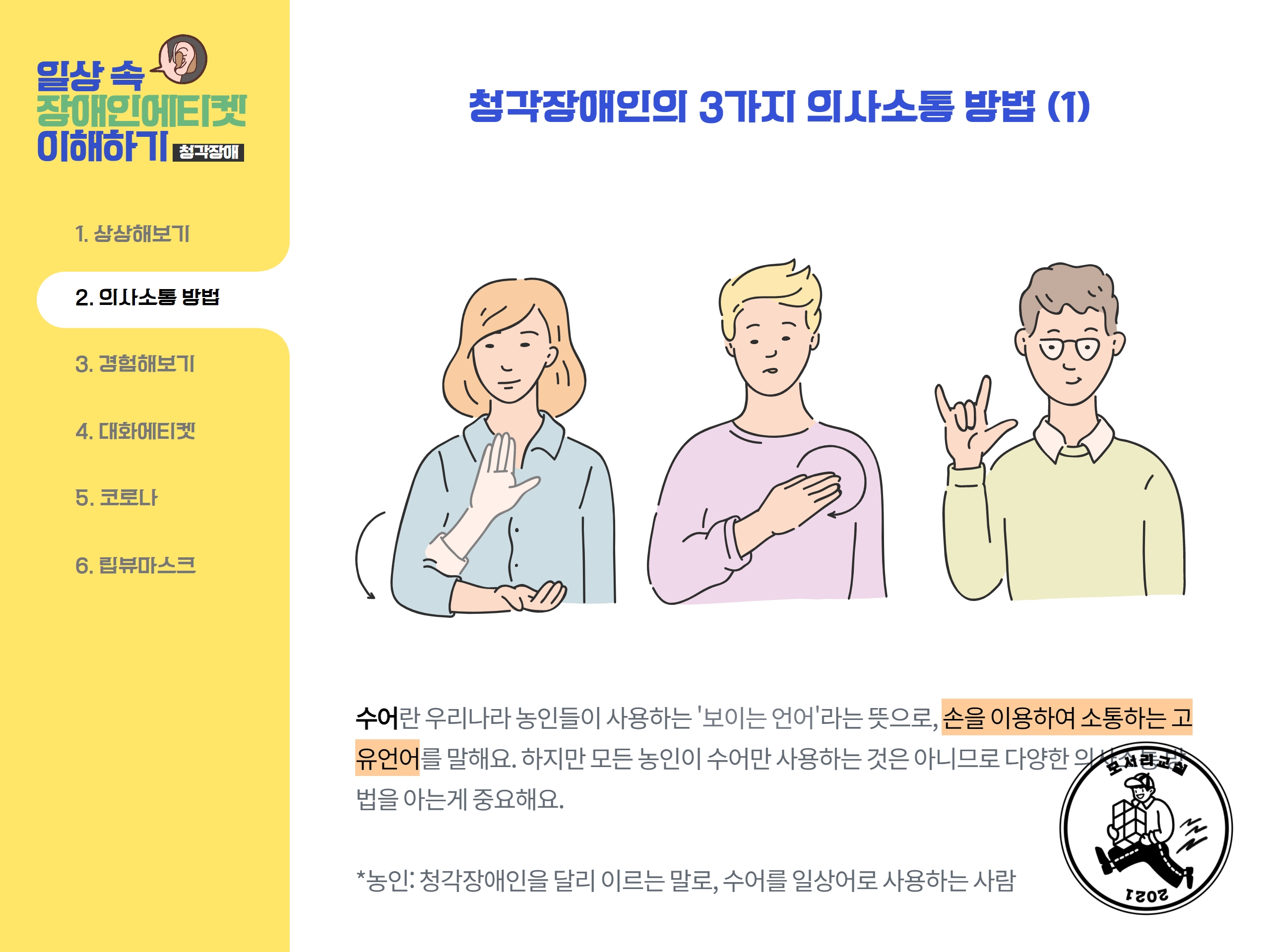청각장애인에게는 대화의 장벽이 되기도 합니다."
