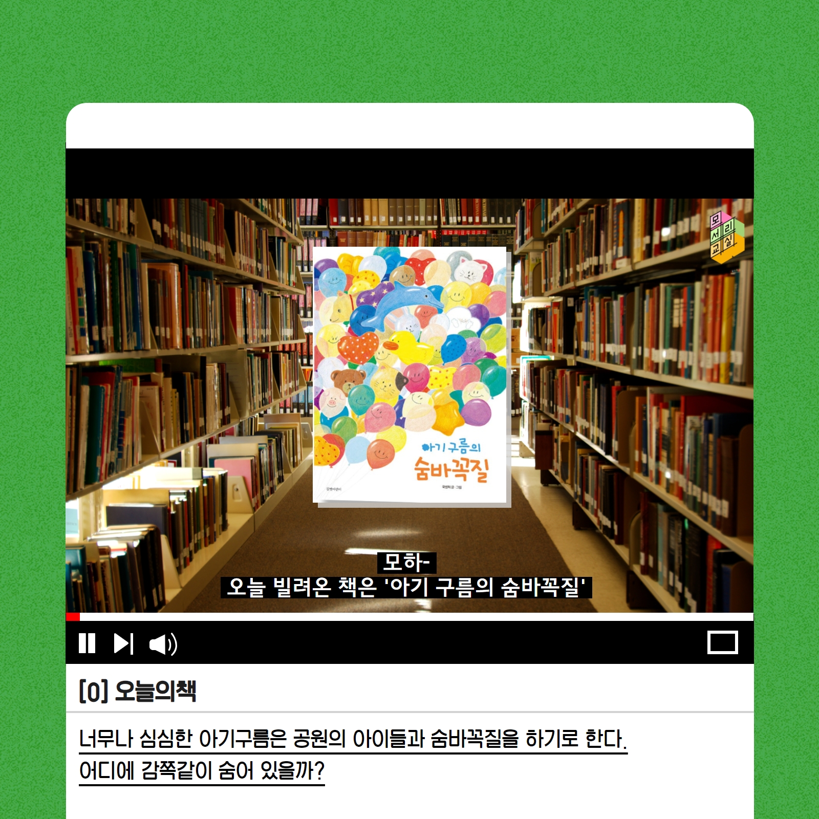 두고두고 보고 싶은 그림책 87권. 사랑스러운 그림과 함께 책을 읽으며 다양한 모습으로 변신하는 아기 구름을 찾는 재미가 가득한 그림책이다. 아기자기한 그림들 속에 숨어있는 아기 구름 외