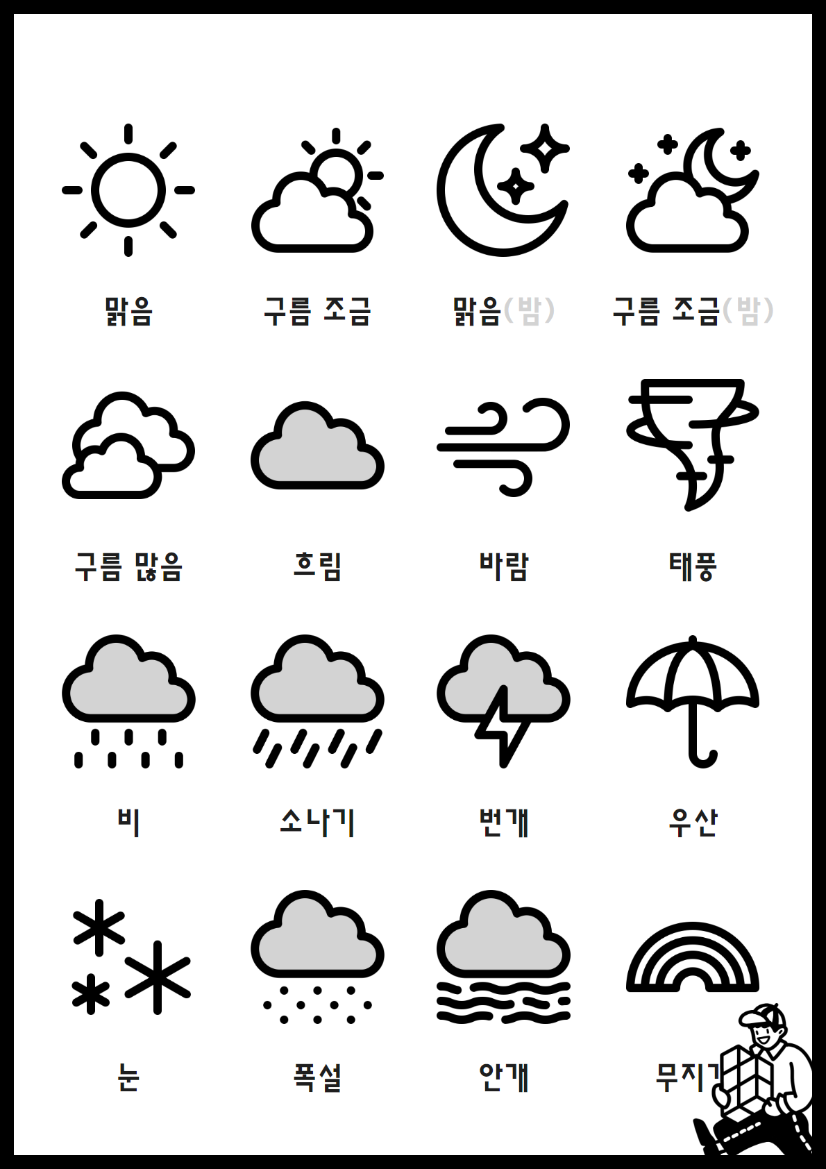 옆 장의 날씨상징을 보고 따라 그리도록 안내한다.