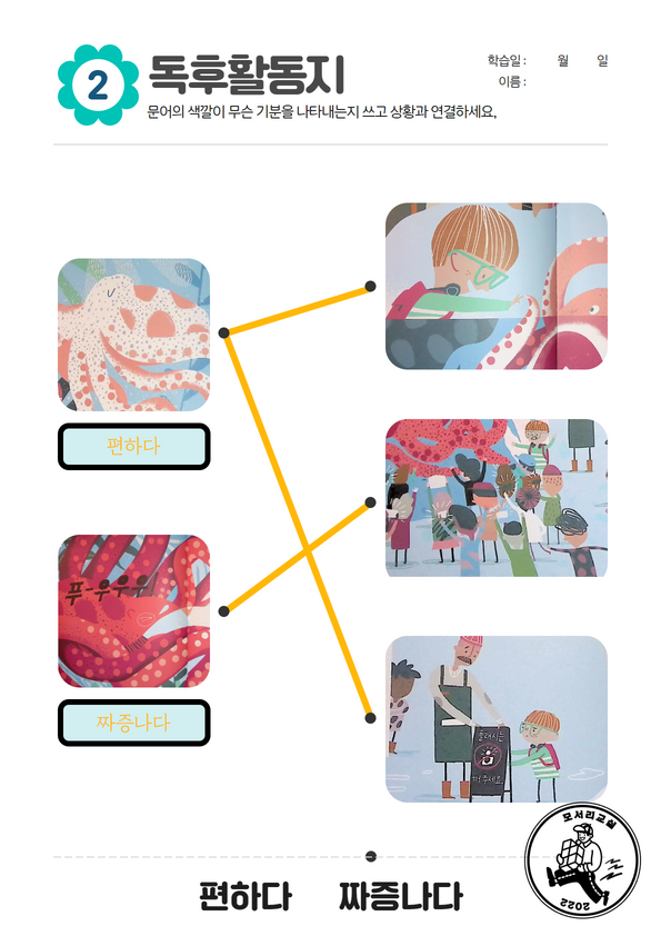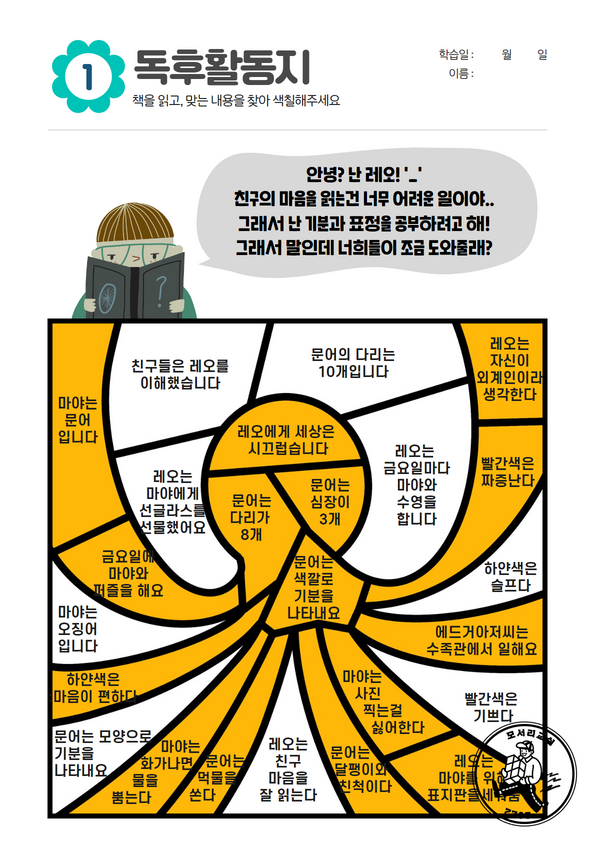더하기신문(자폐성장애)_「나의 특별한 친구, 문어」 독후활동지.pdf1.91MB더하기신문(자폐성장애)_「나의 특별한 친구, 문어」 정답지.pdf2.17MB재배포 및 상업적 이용 금지