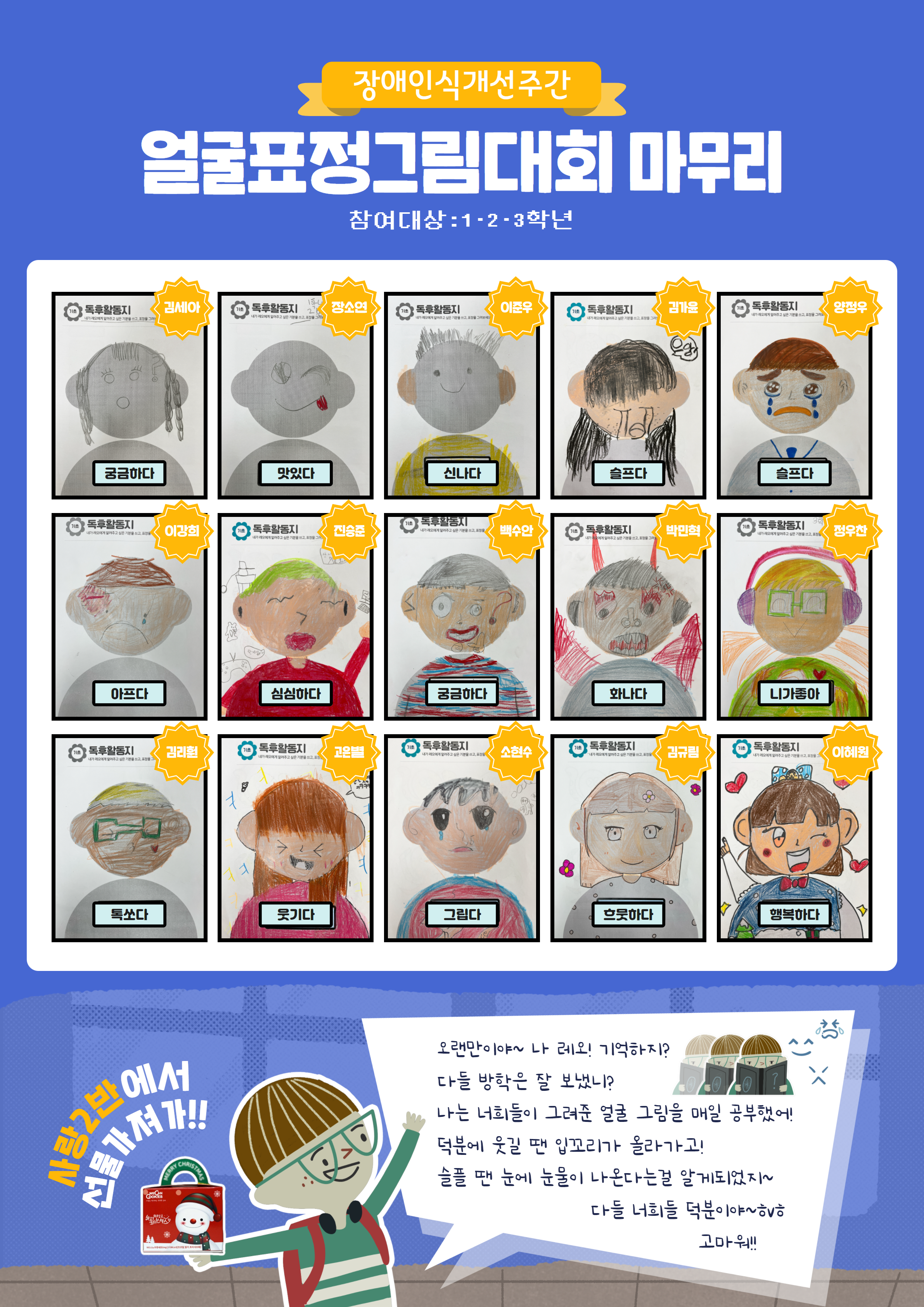 #176 장애이해교육:더하기신문(자폐성장애)_얼굴표정그림대회장애이해/더하기신문 2022. 1. 23. 02:02