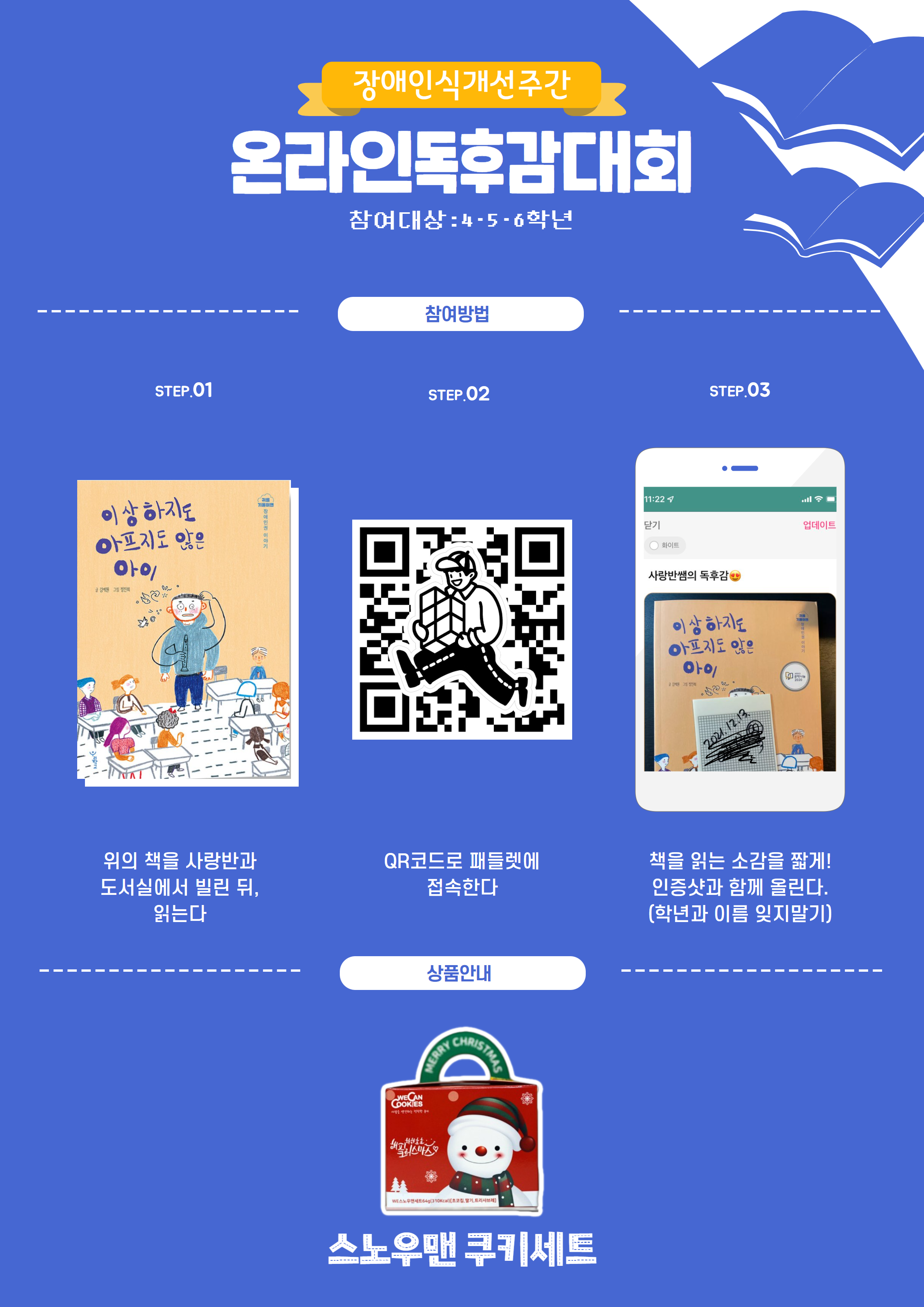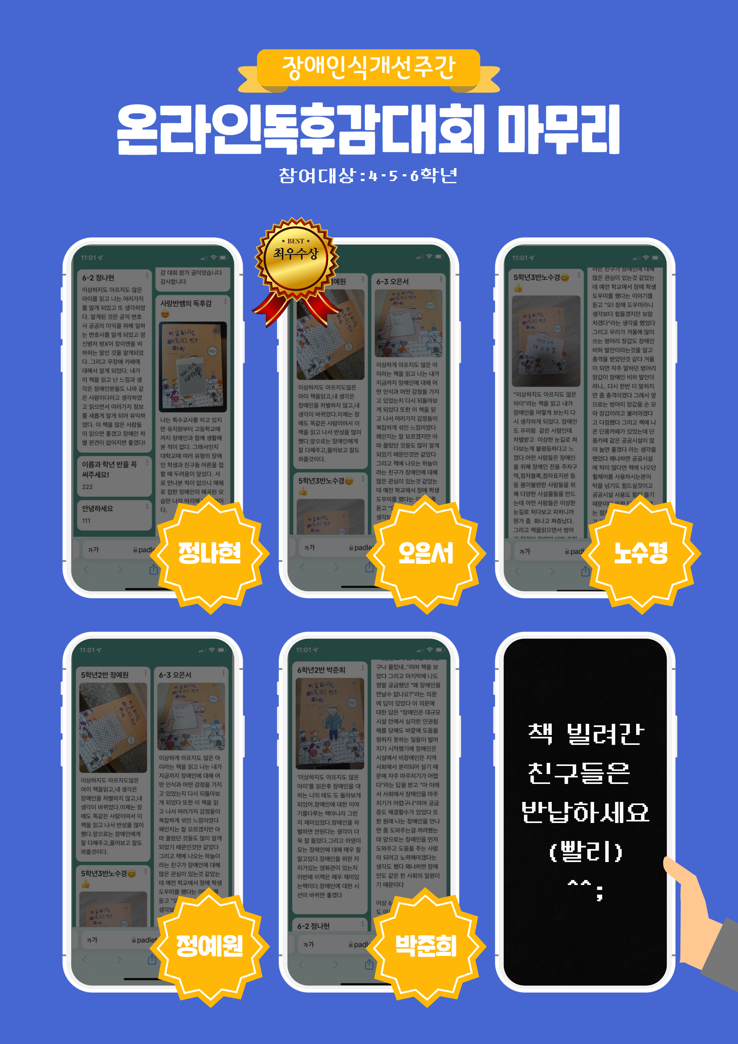 - '온라인독후감대회 마무리' 포스터를 붙인다.
