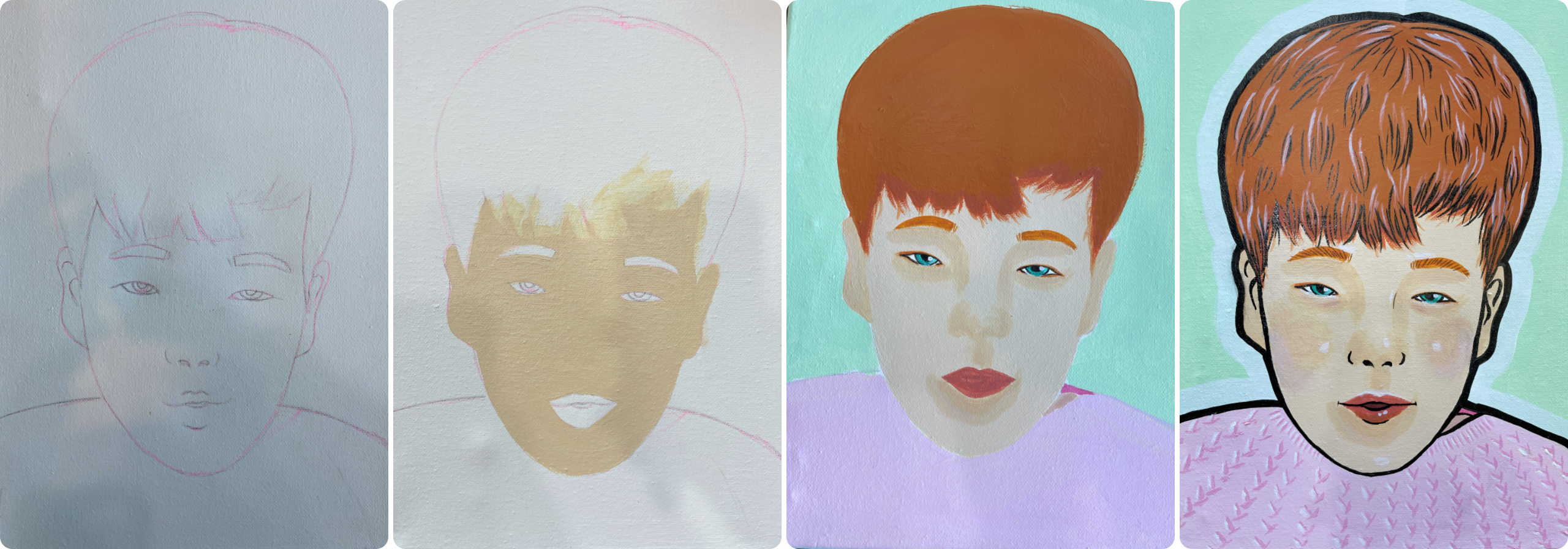 - 검은색 마카로 얼굴안쪽과 머리카락을 그린다.