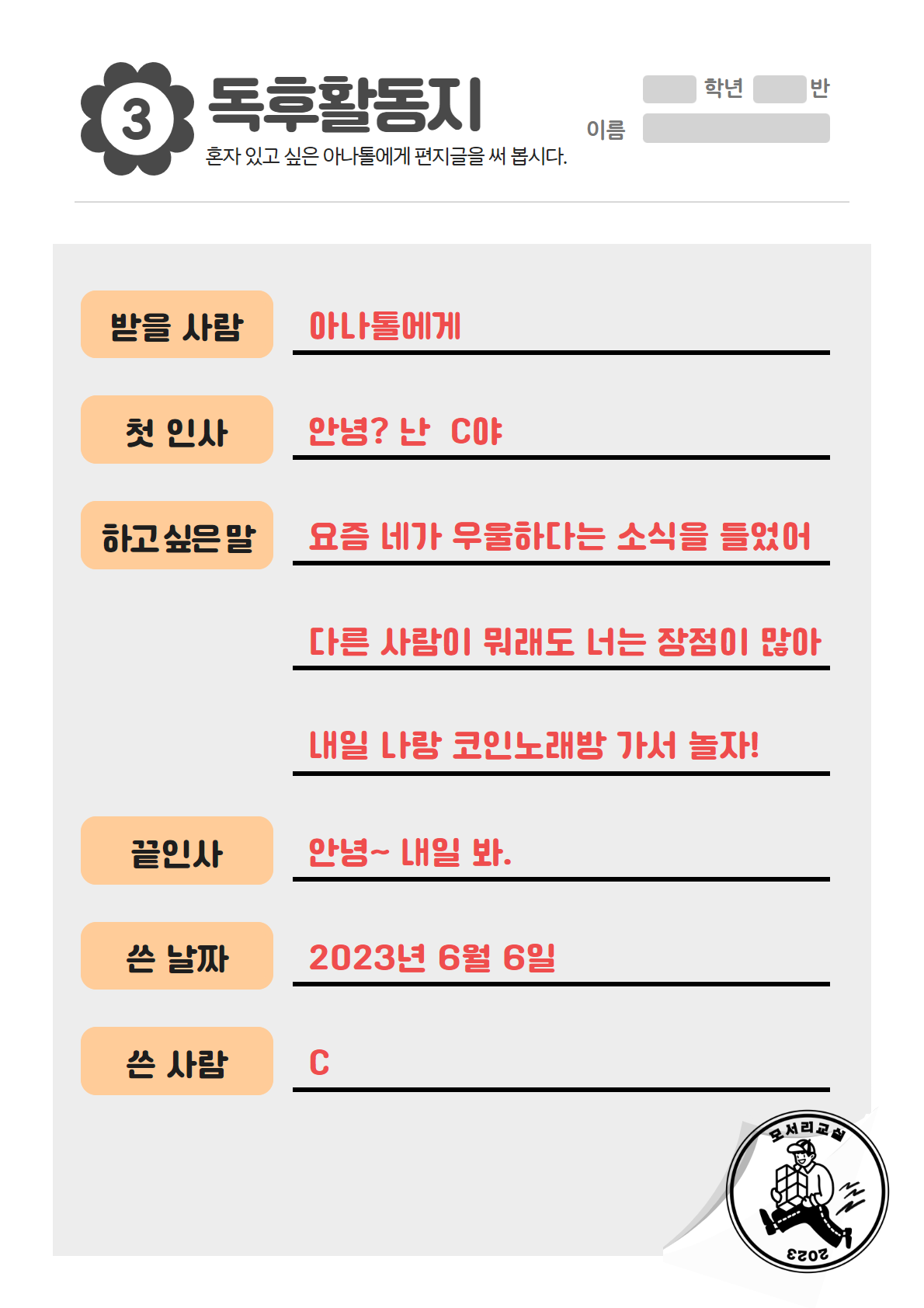 - 열심히 쓴 친구에게 답장과 선물을 보낸다~