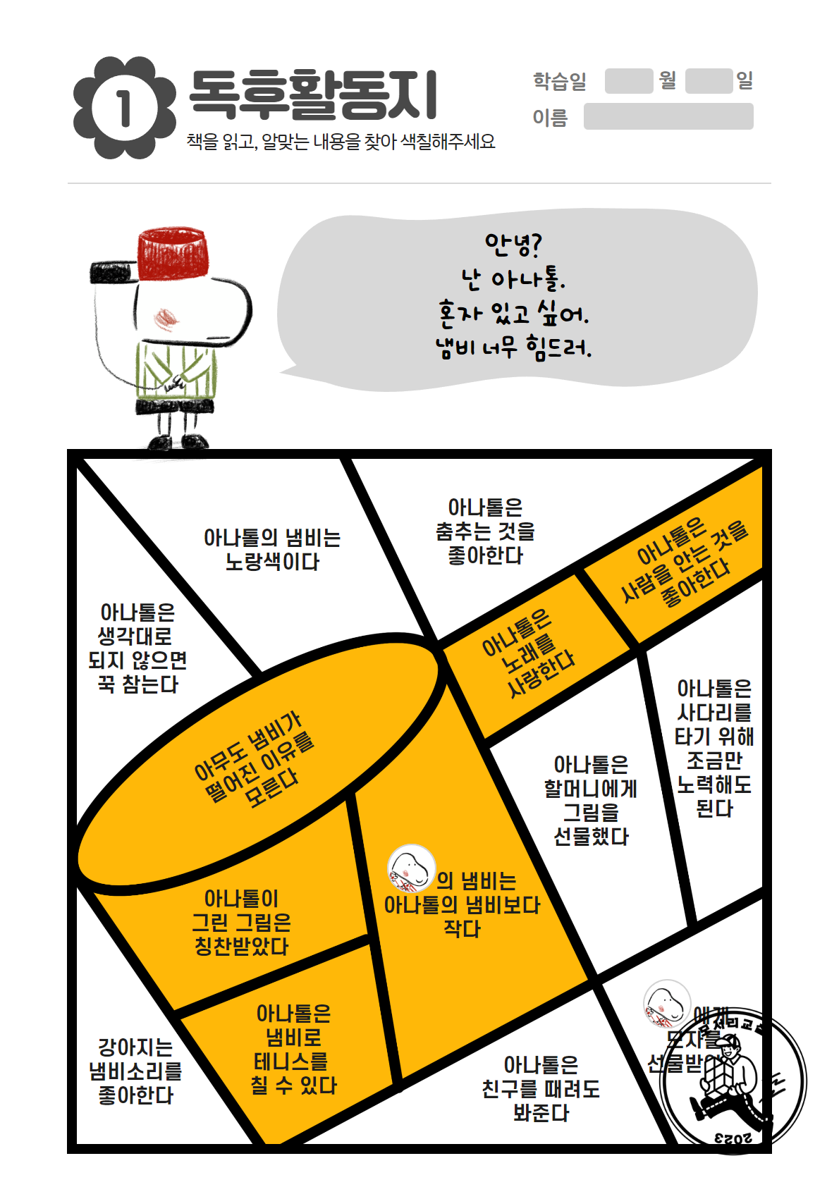 독후활동지(아나톨의작은냄비).pdf0.46MB독후활동지(아나톨의작은냄비)_답안지.pdf0.59MB재배포 및 상업적 이용 금지