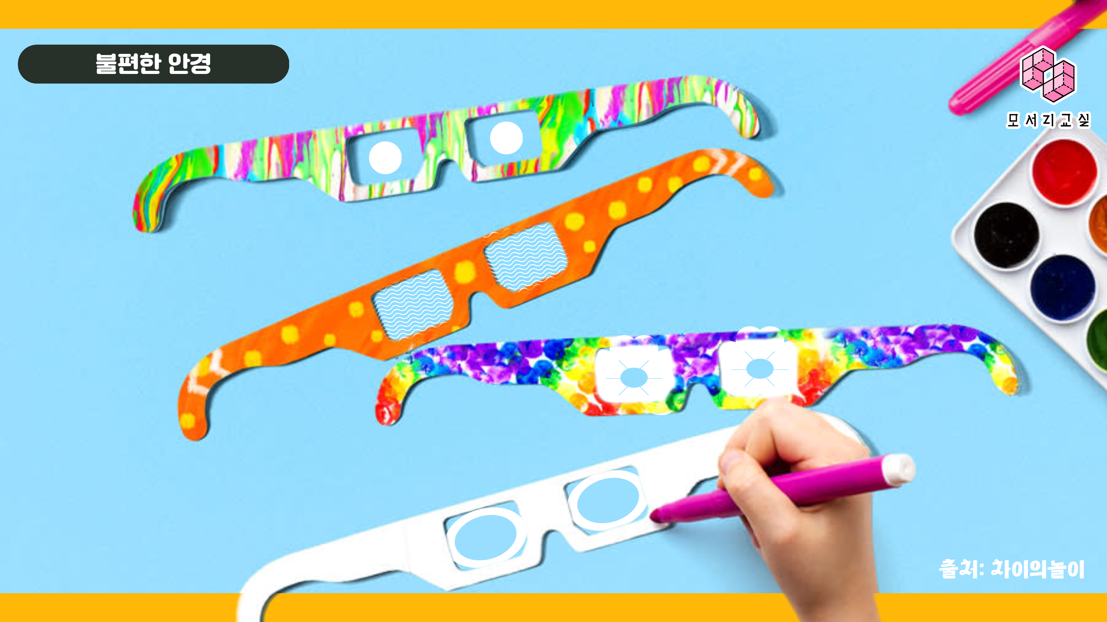 오늘 우리가 만든 안경은 반대로 좋은 눈을 불편하게 하여