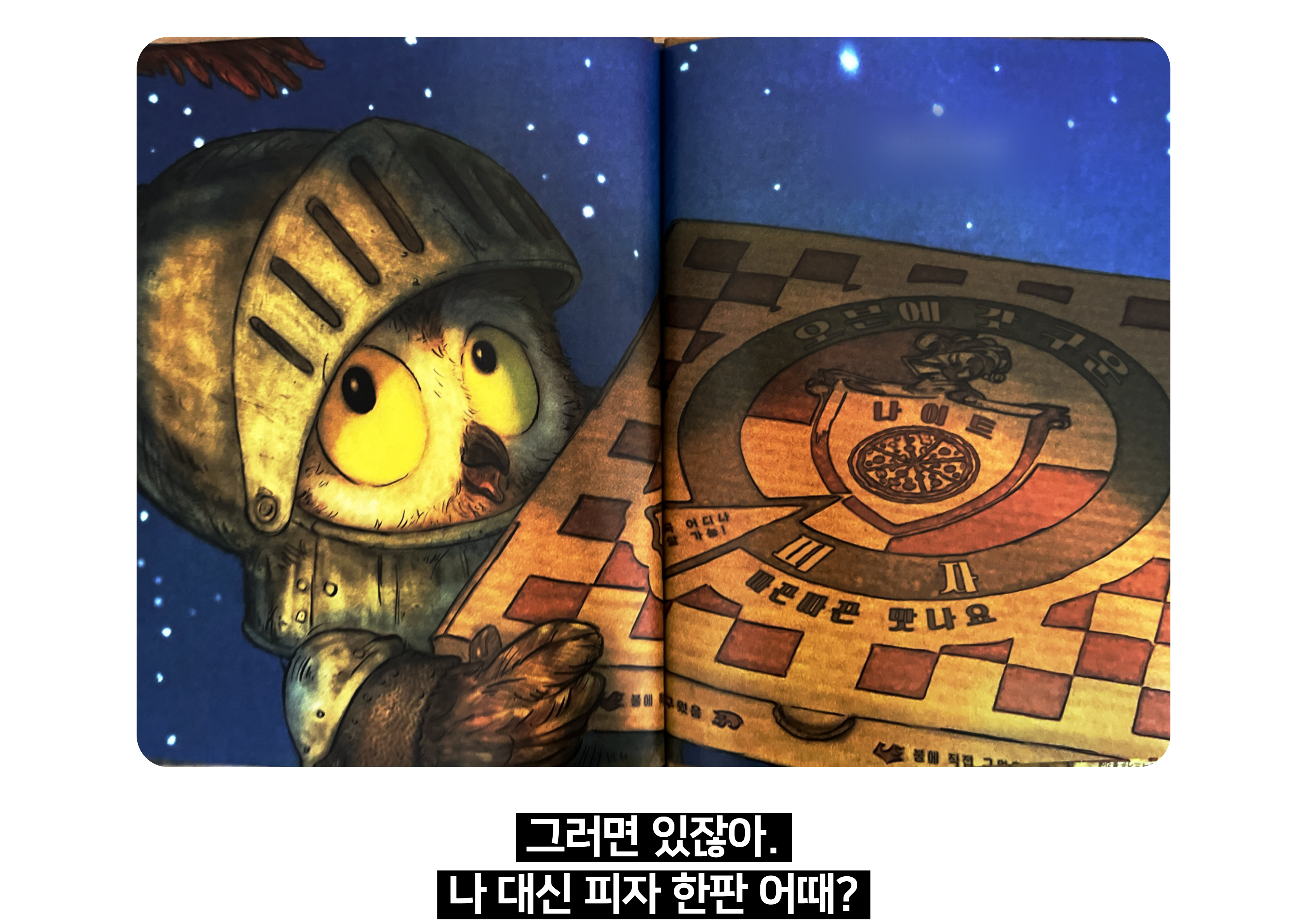 3. 그러던 어느 날 무서운 용을 마주치게 된 올빼미 기사는 창을 내려 놓고 비장의 무기인 야식을 꺼내는데..