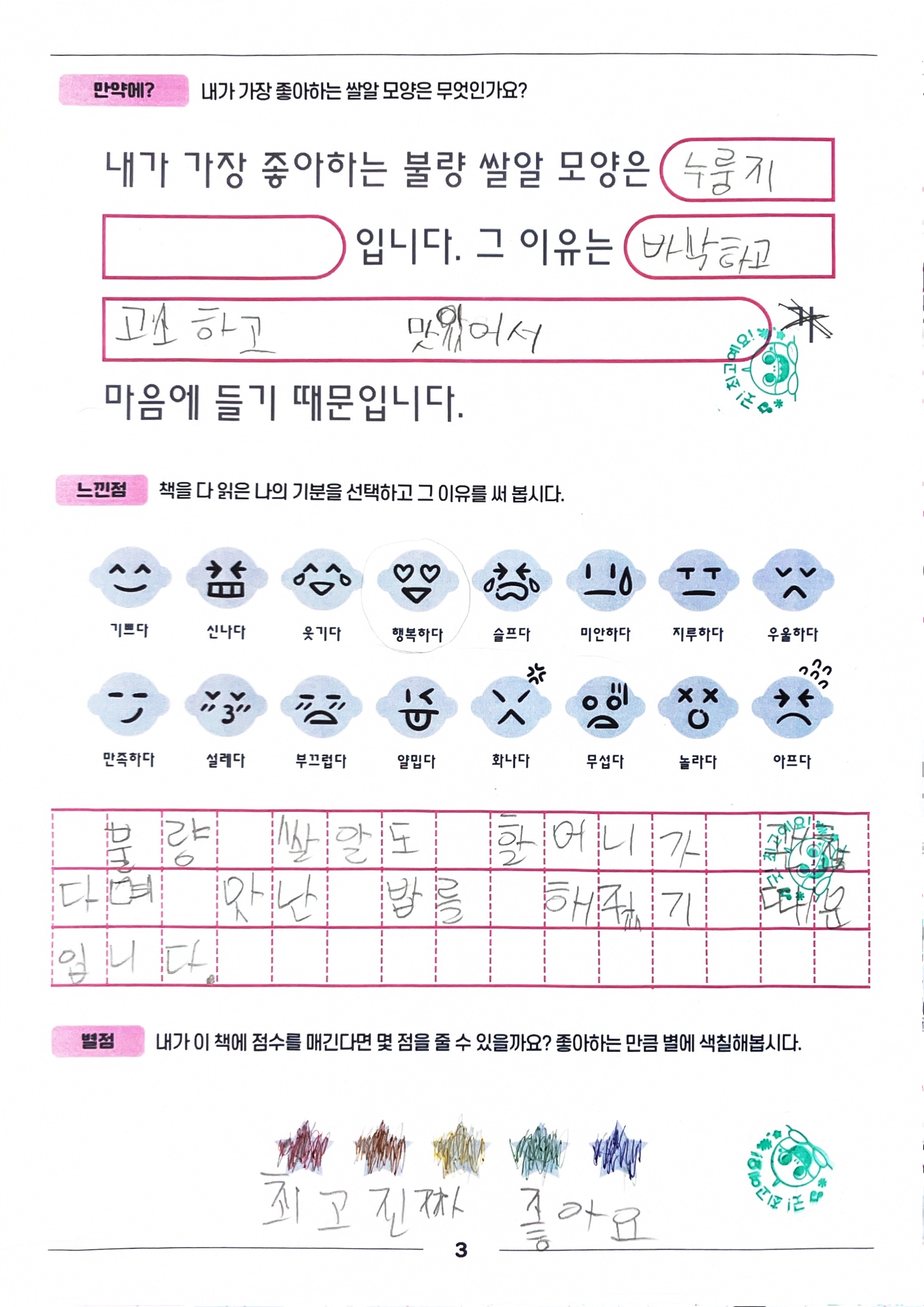 😷 우리 모두 매끈한 쌀알이 되길 원하지만 크고 작은 흠집을 갖고 있어요! 내가 갖고 있는 작은 흠은?