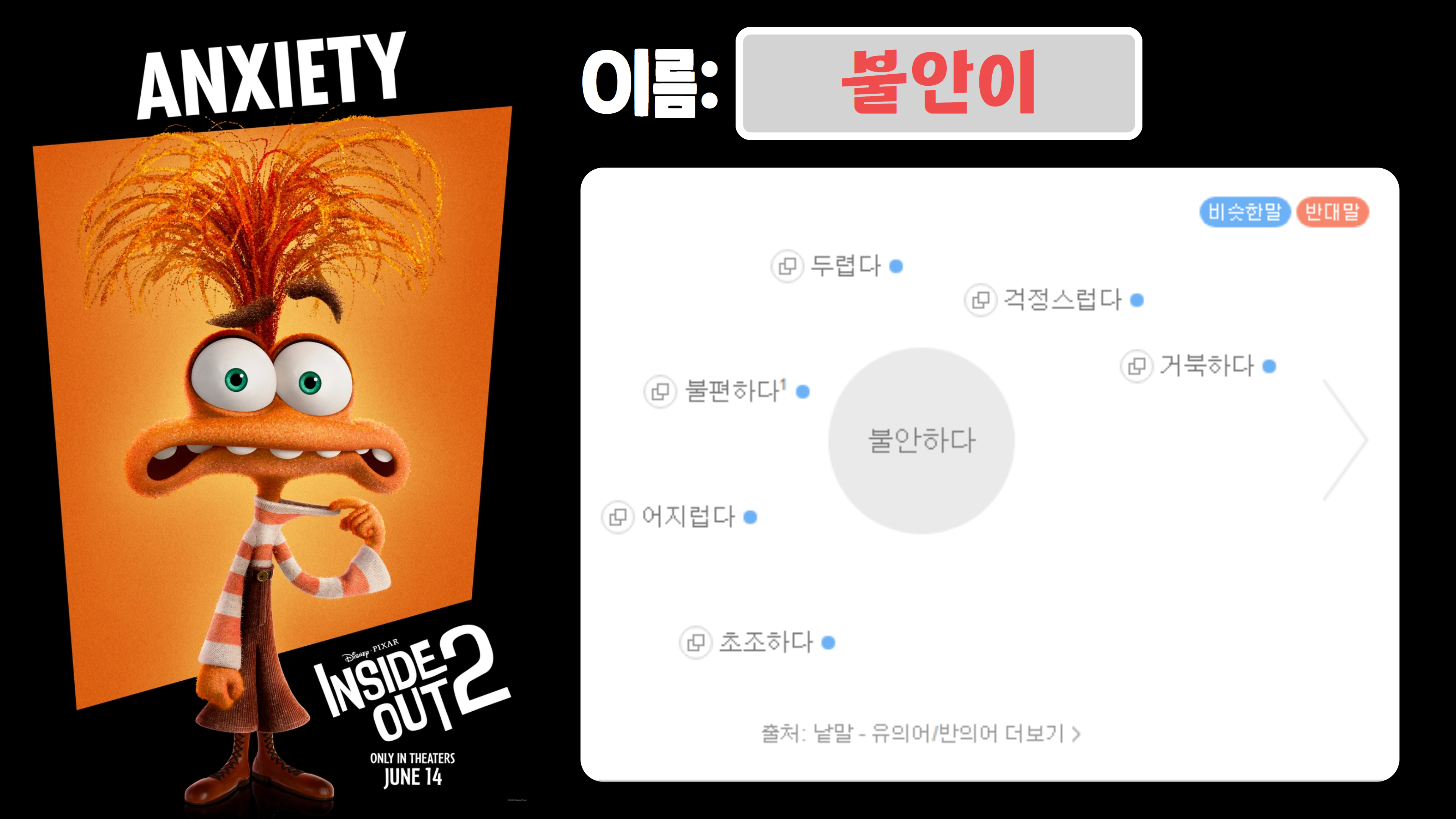 - 라일리가 스트레스나 불안감을 느낄 때 나타나는 감정으로, 특히 새로운 환경이나 사춘기 시기에 더욱 중요해진 감정입니다.