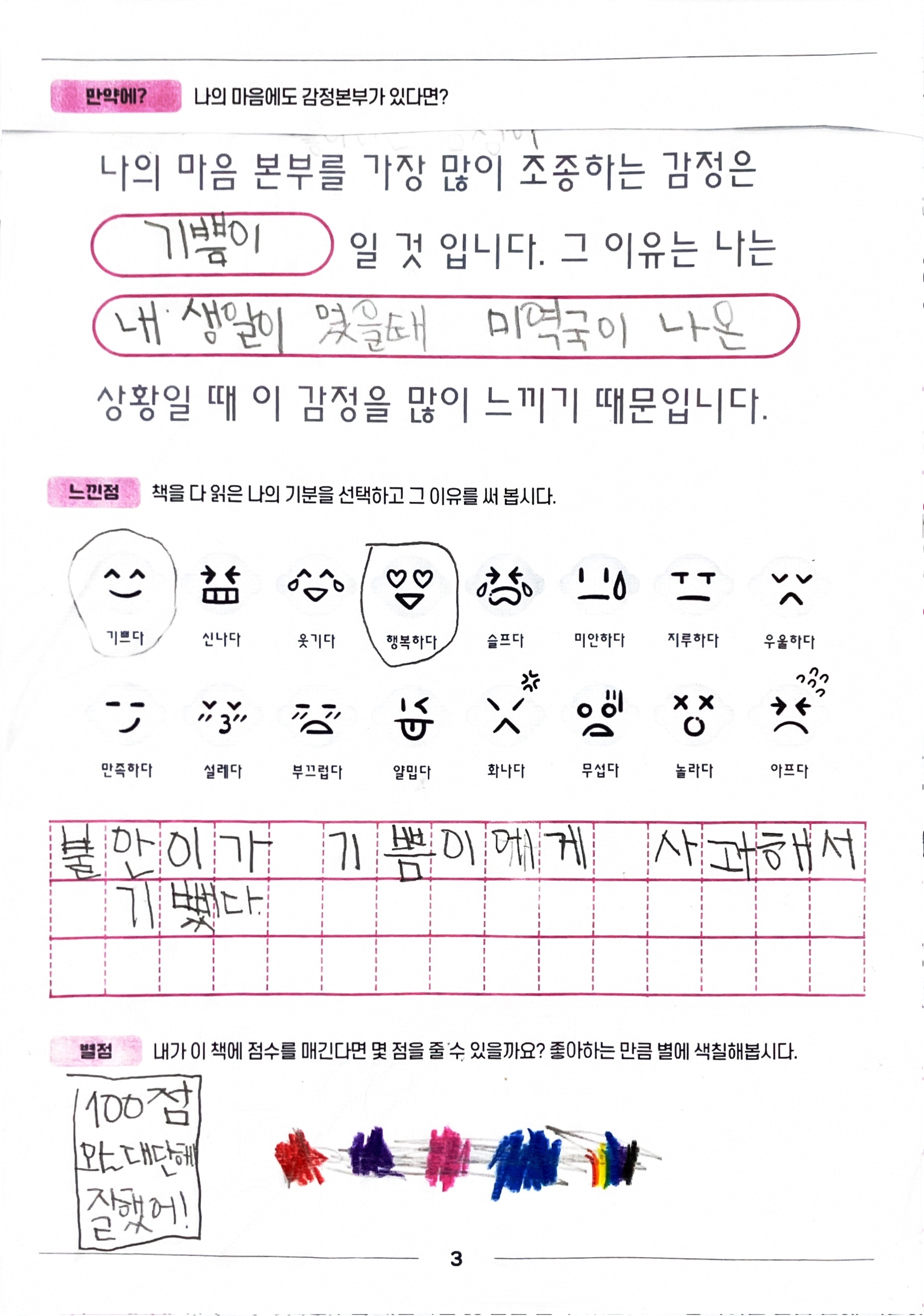 이 질문들은 학생들이 감정을 이해하고 자신만의 경험을 표현할 수 있는 기회를 제공할 것입니다.