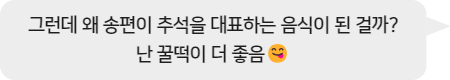 꿀떡이 더 좋다는 생각도 멋진 관점이에요! 송편 대신 꿀떡이 추석 음식이라면: