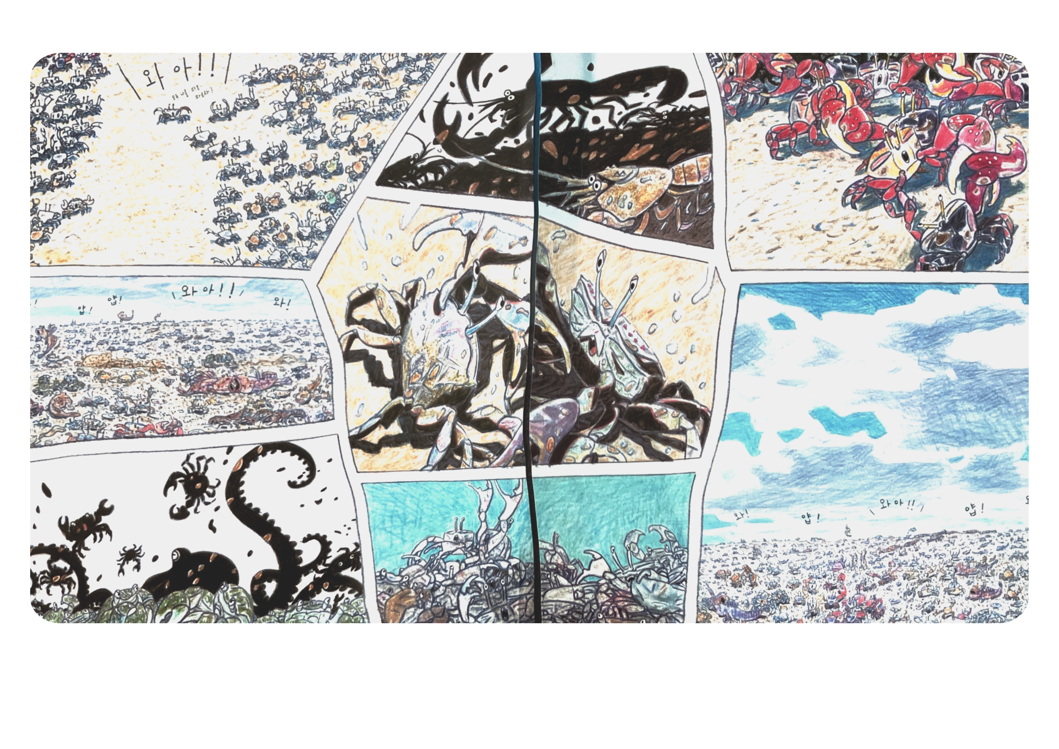 이처럼 '갯벌전쟁'에 등장하는 동물들은 각기 다른 특징과 역할을 통해 갯벌 생태계의 다양성과 조화를 표현하며, 독자들에게 생태계의 소중함을 알려줍니다!