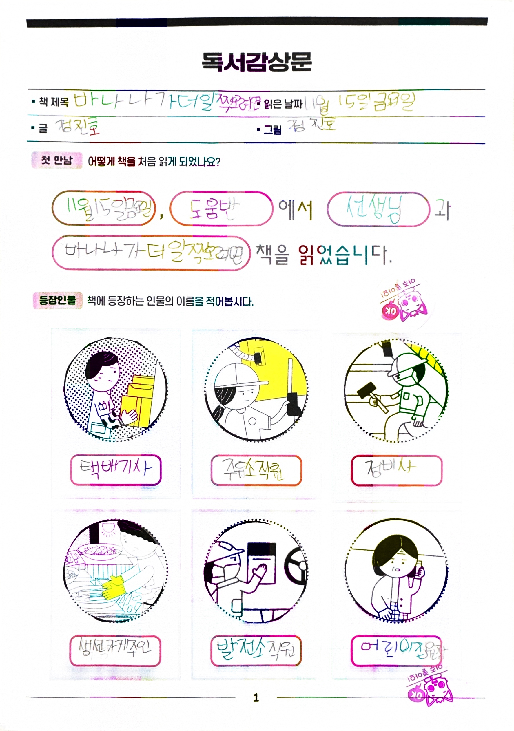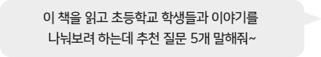 ChatGPT초등학교 학생들과 이 책을 읽고 나눌 수 있는 대화의 중심이 될 수 있는 질문을 추천드릴게요. 아이들의 눈높이에 맞춰 쉽게 질문하고, 생각을 나누며 이야기를 확장할 수 있는 질문들입니다.