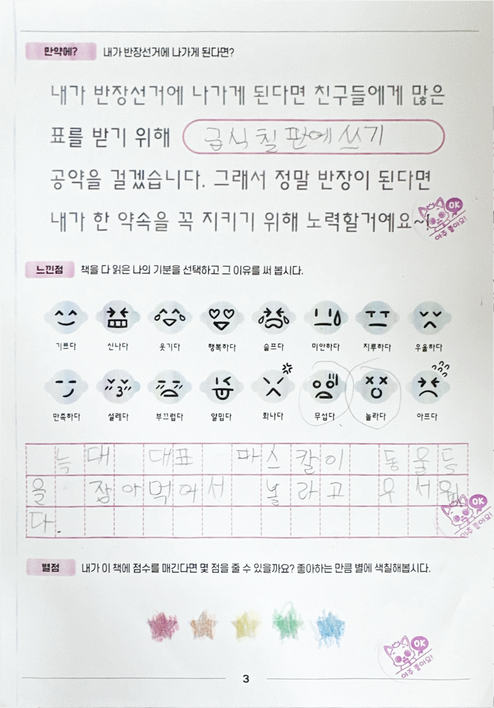 2. 만약 네가 반장 후보라면 어떤 약속(공약)을 하고 싶어?