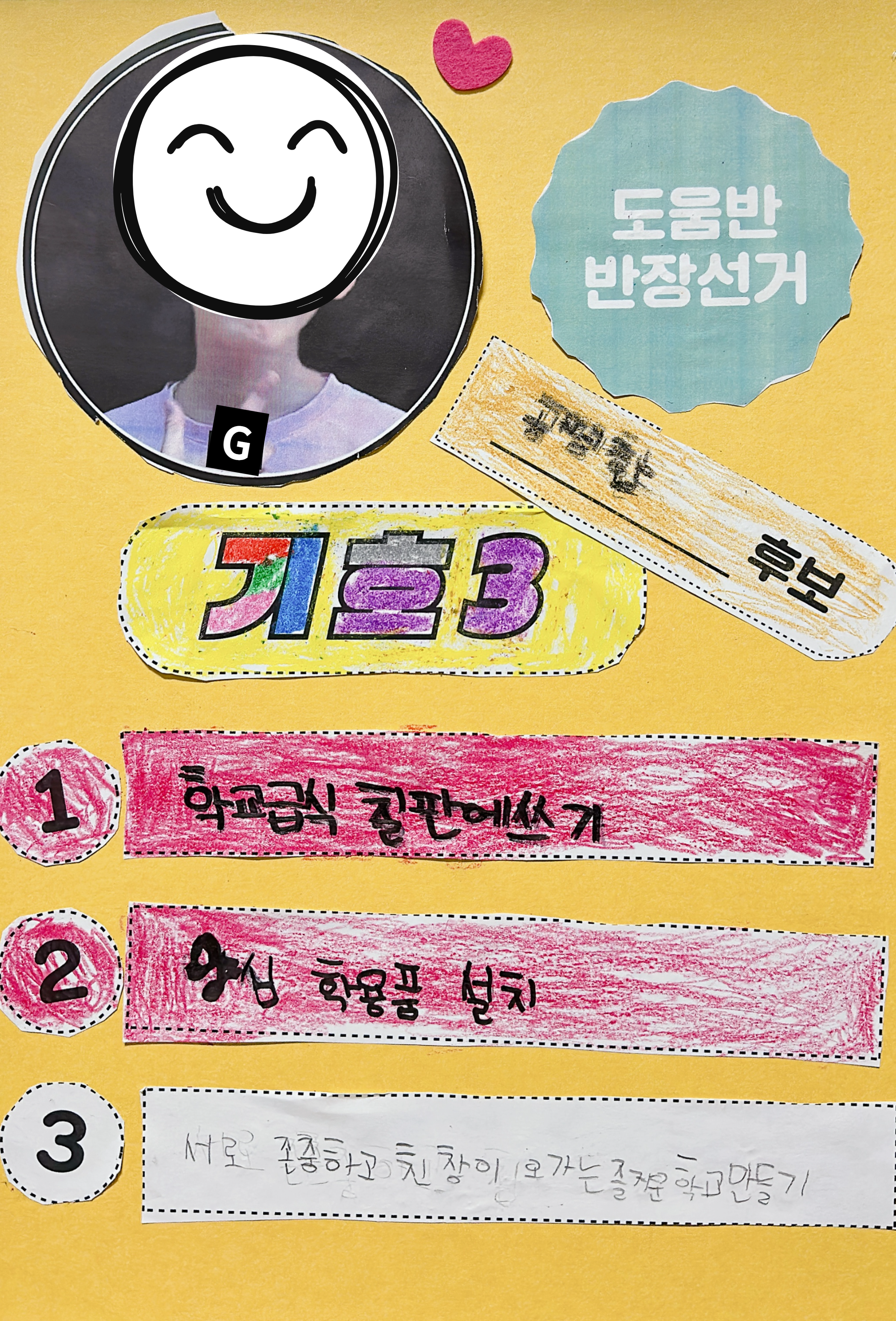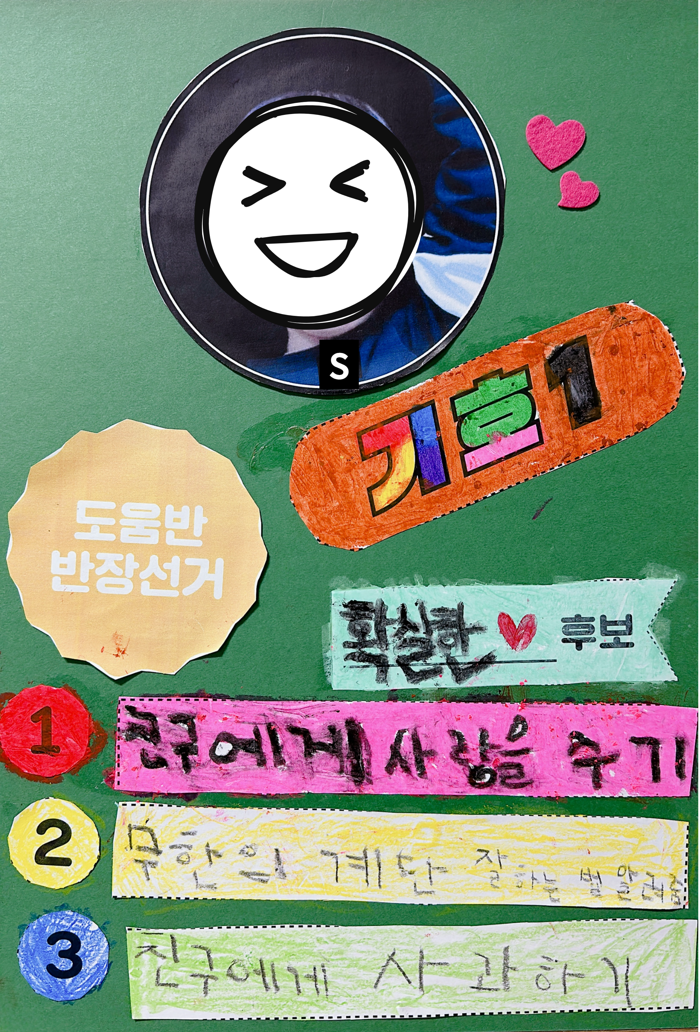 - 예시: "1번 후보 김민지" 또는 "친구들의 웃음을 지킬 ○○!"
