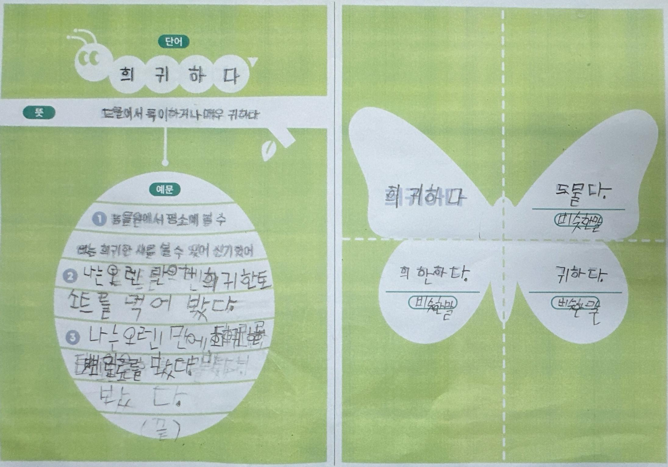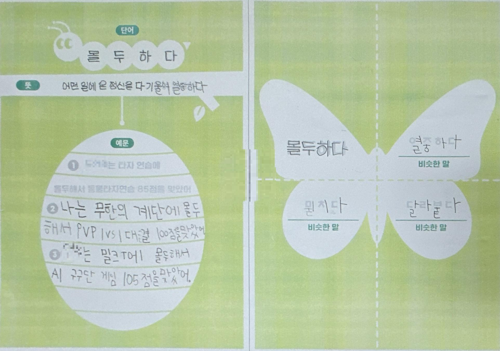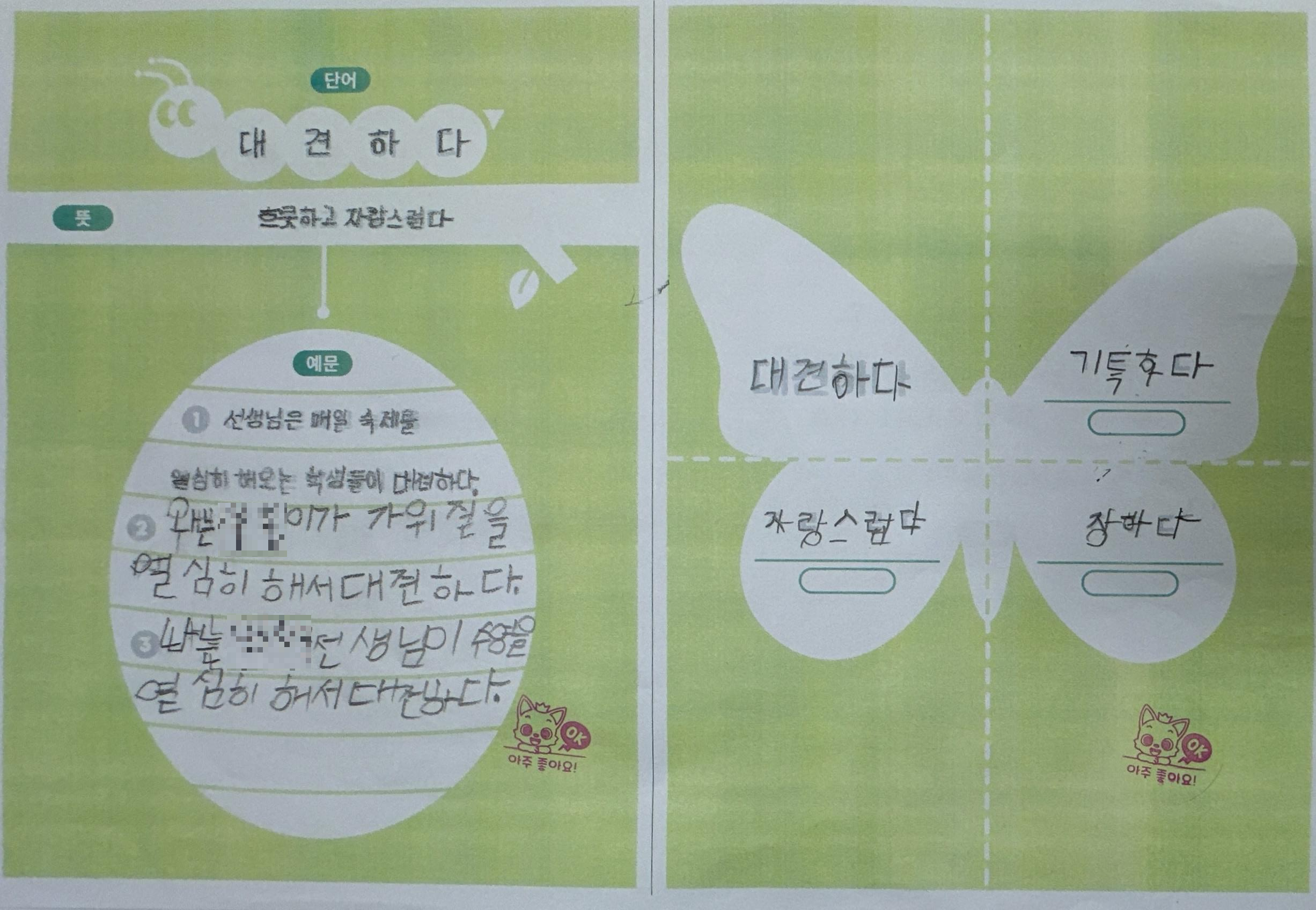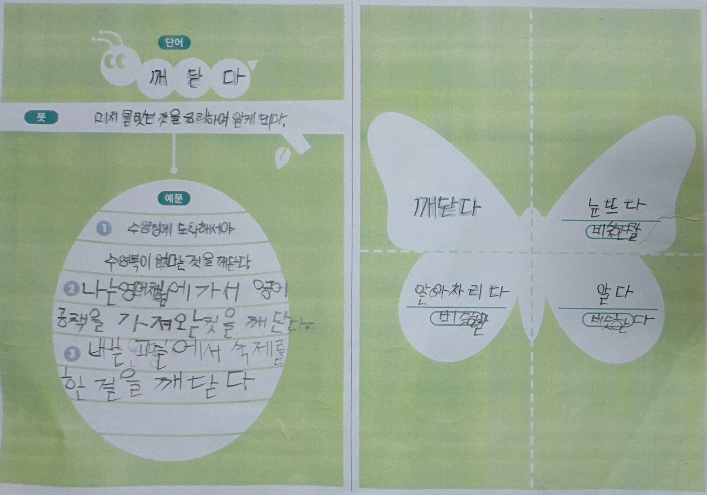 다음 날 1교시 국어시간 목표 단어를 복습하기👍