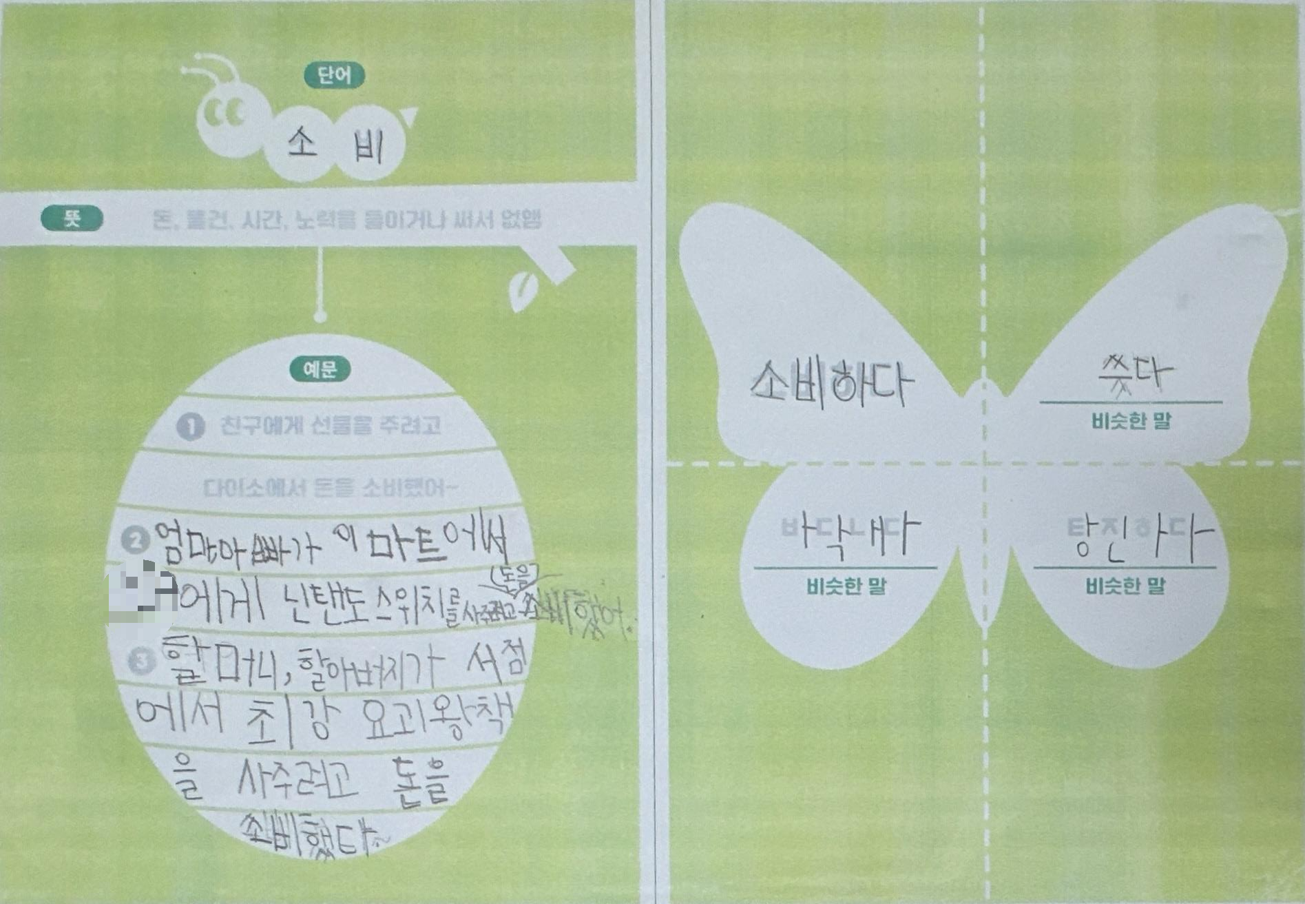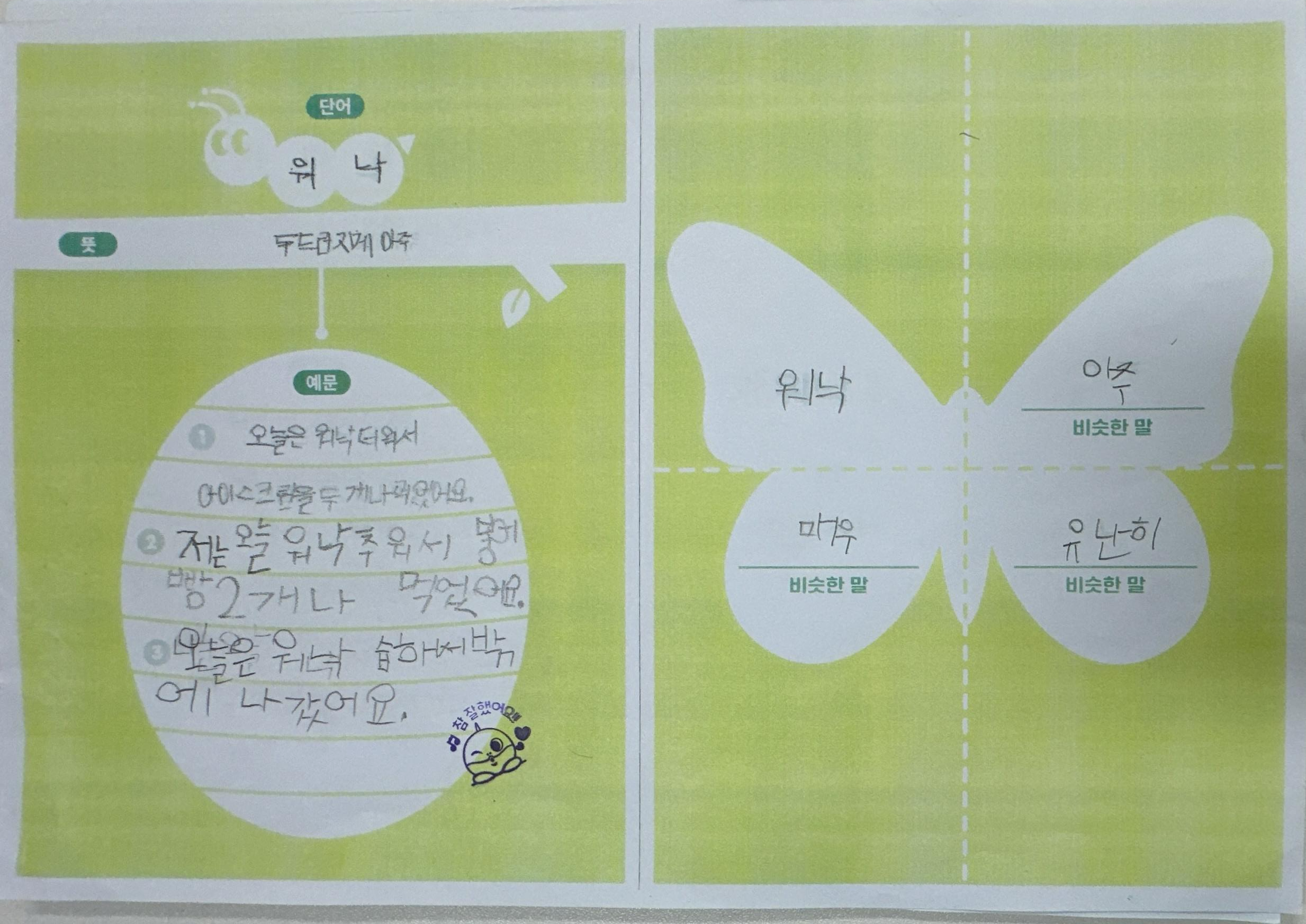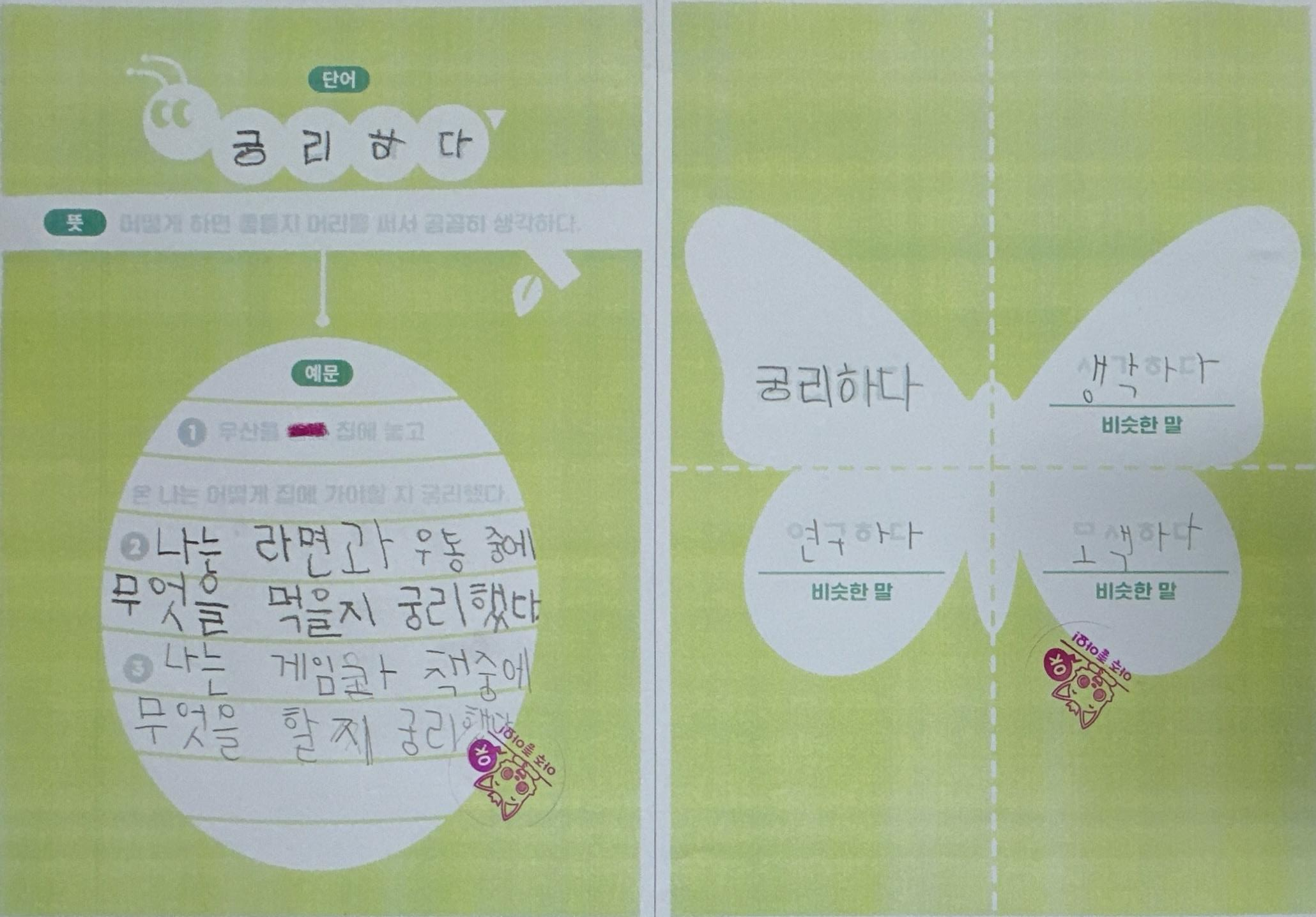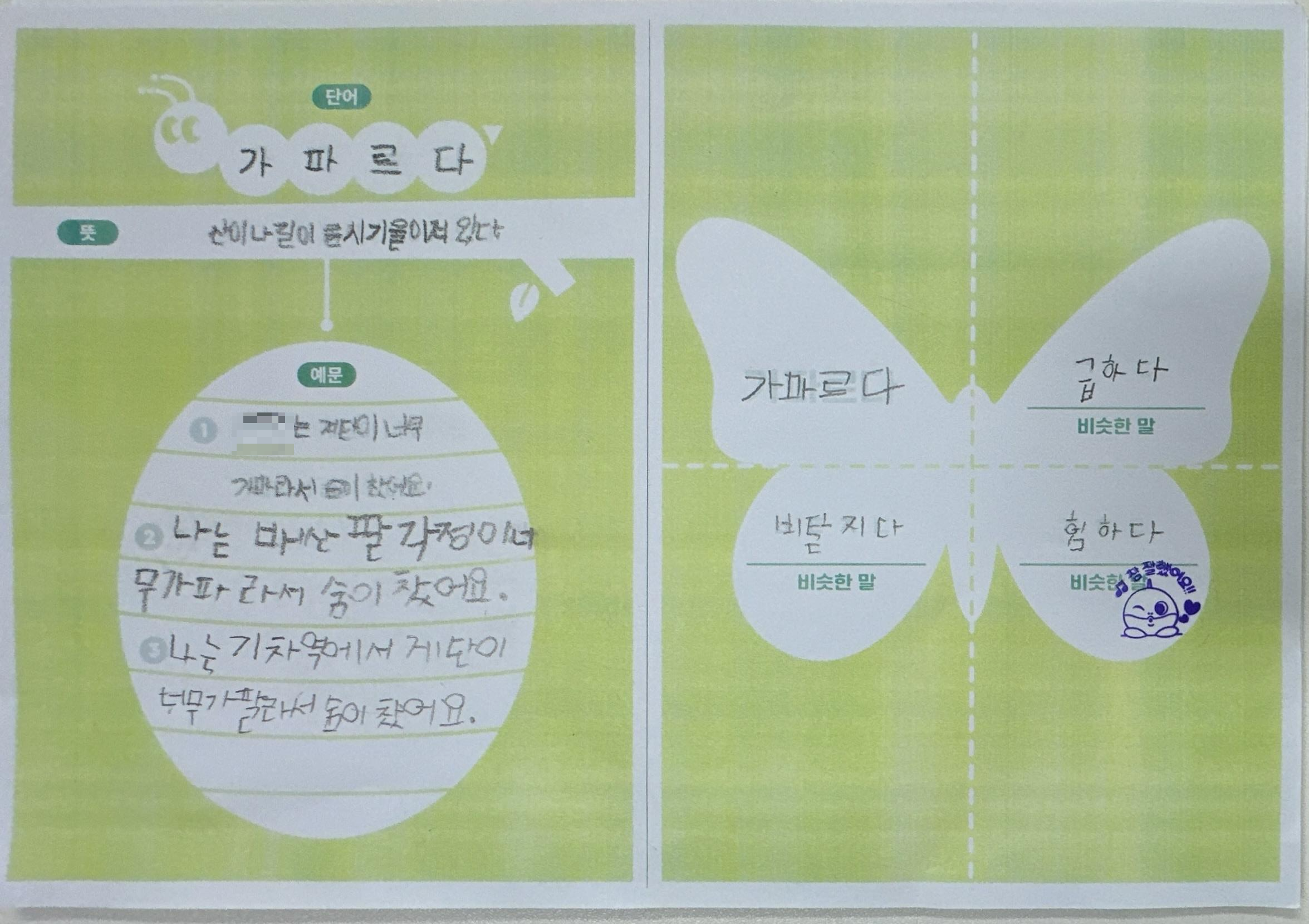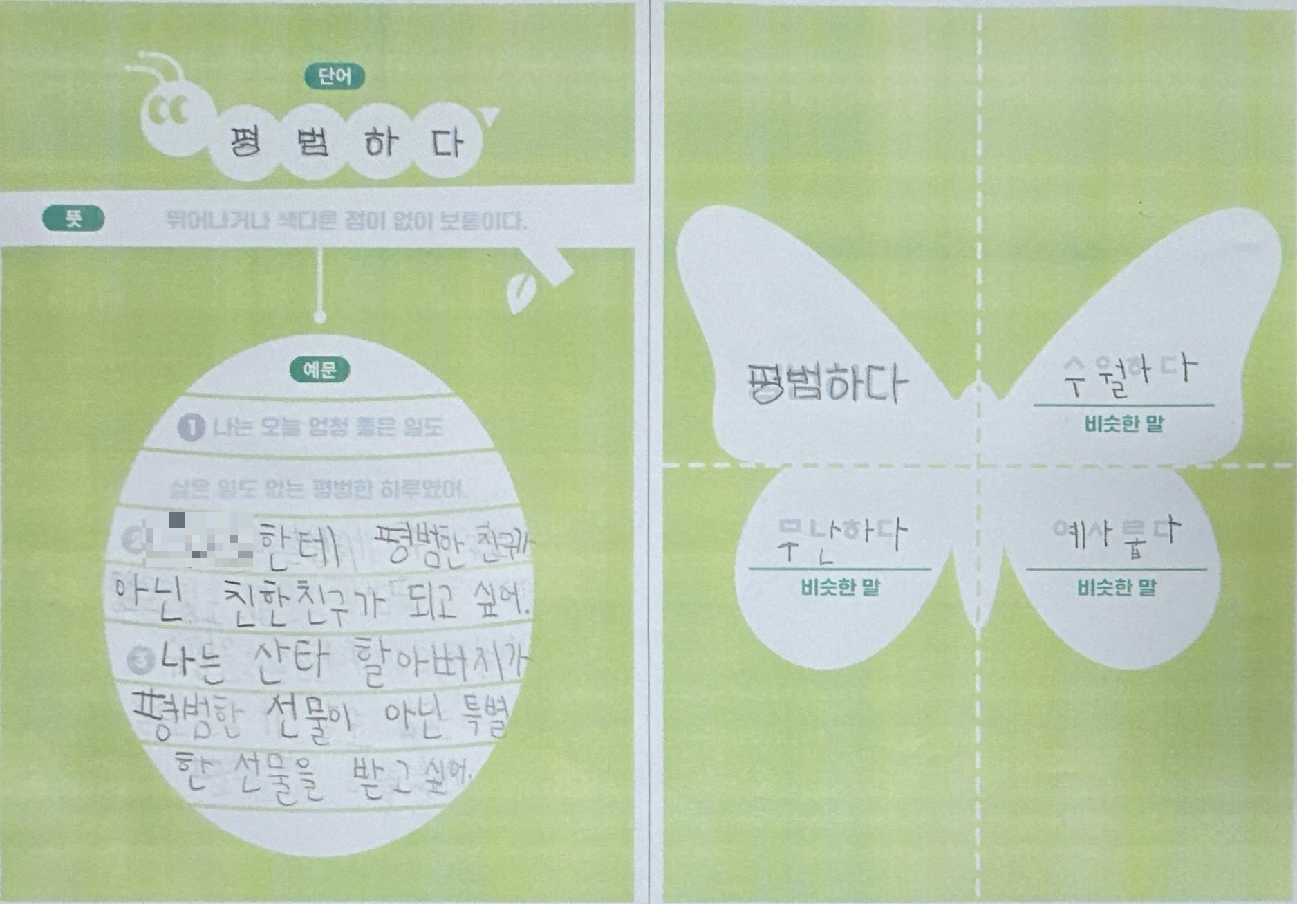 다음 날 1교시 국어시간 목표 단어를 복습하기👍
