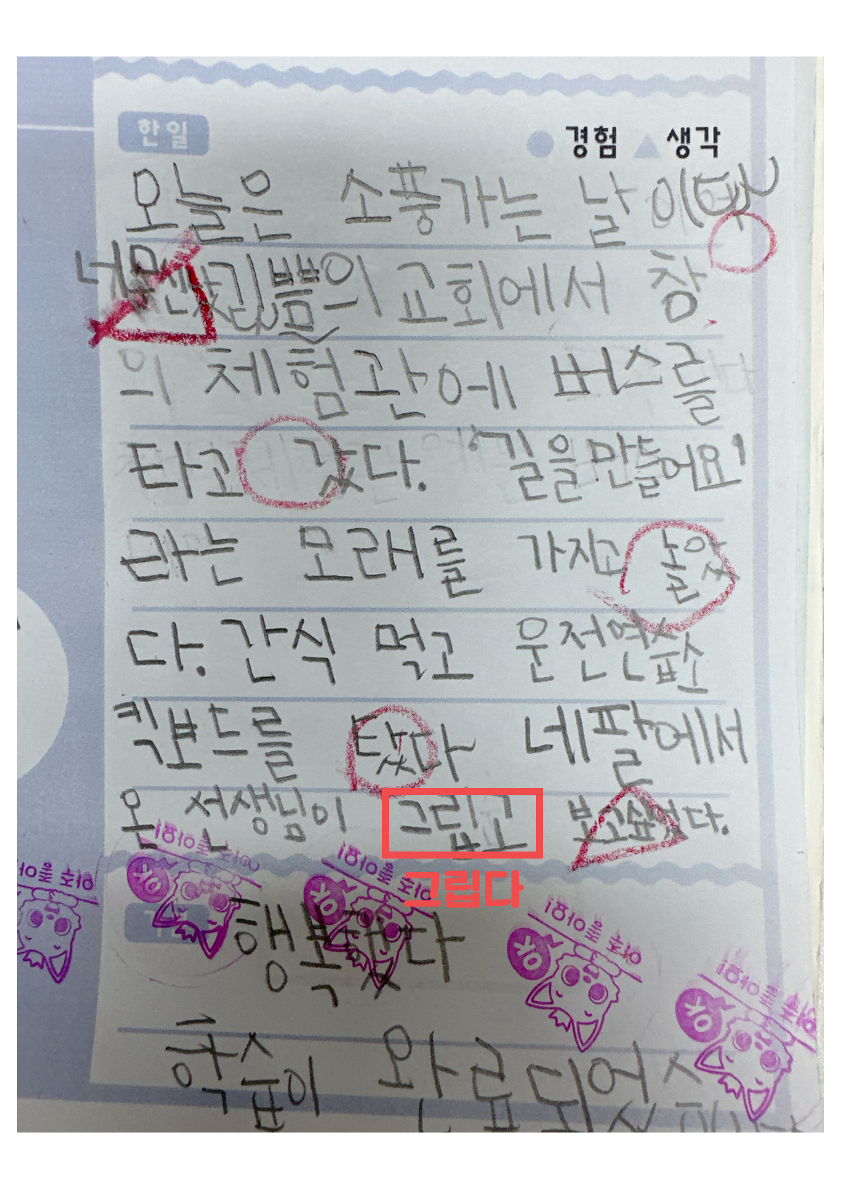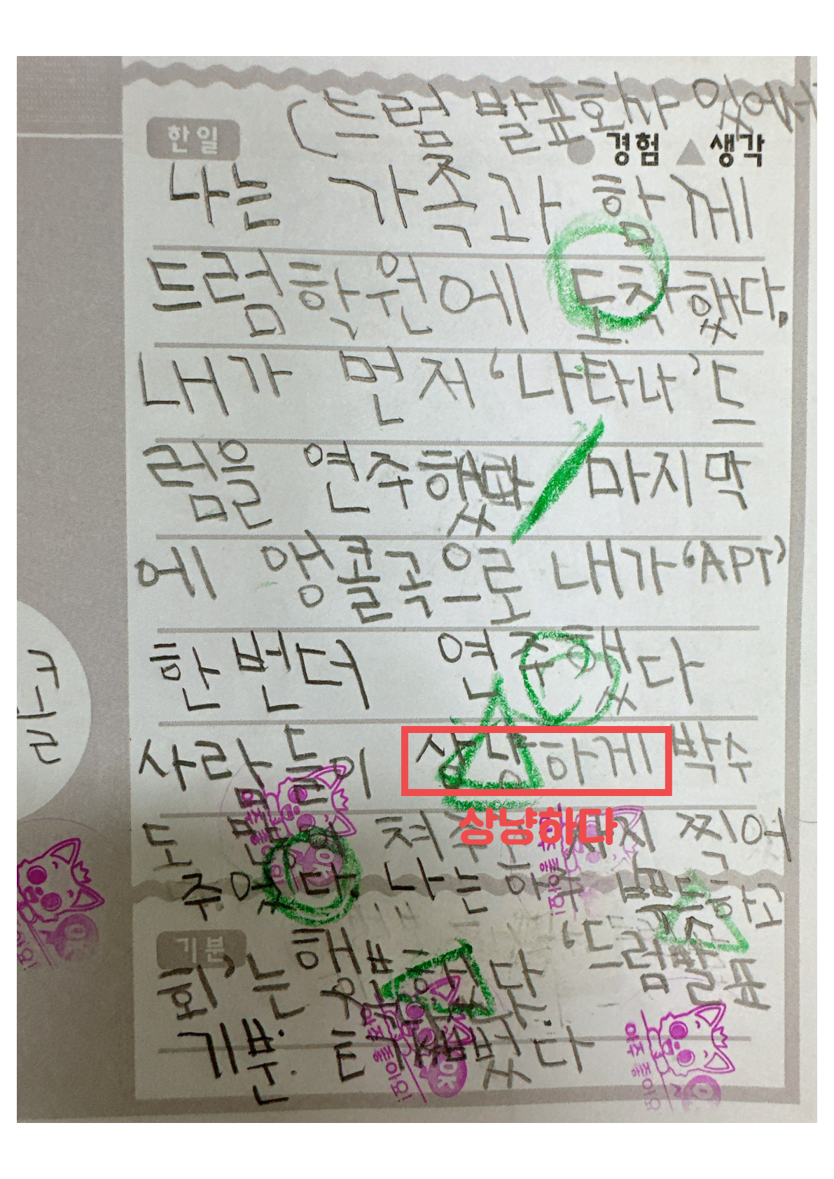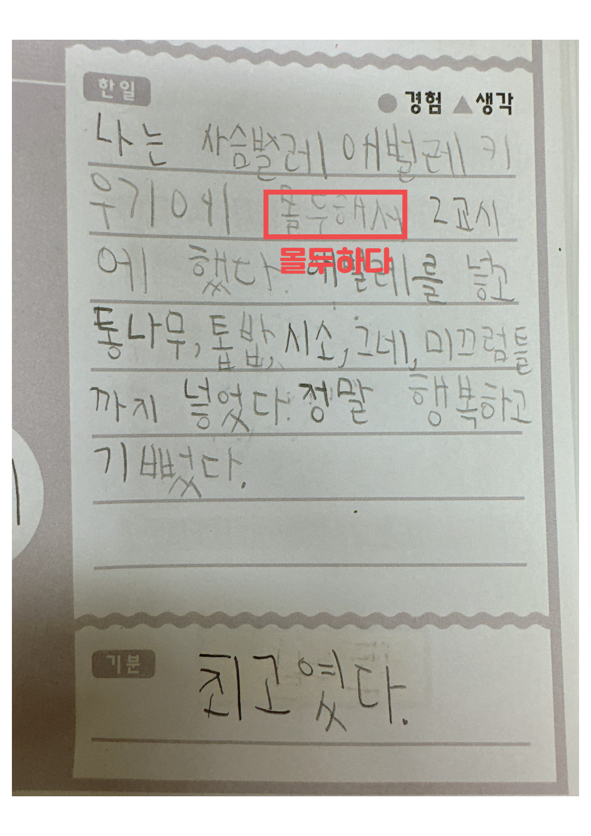 목표단어를 넣어 일기를 써본다.