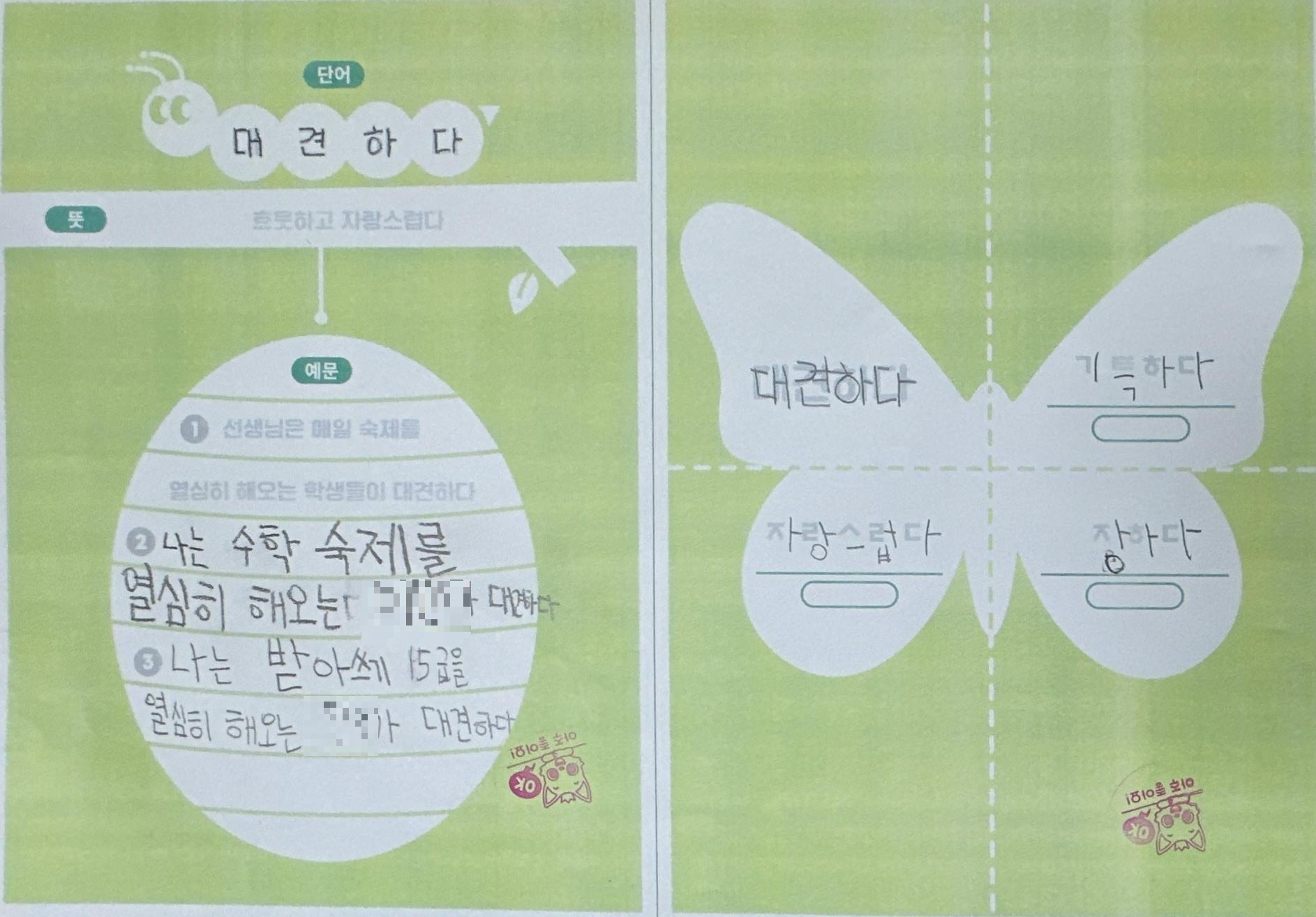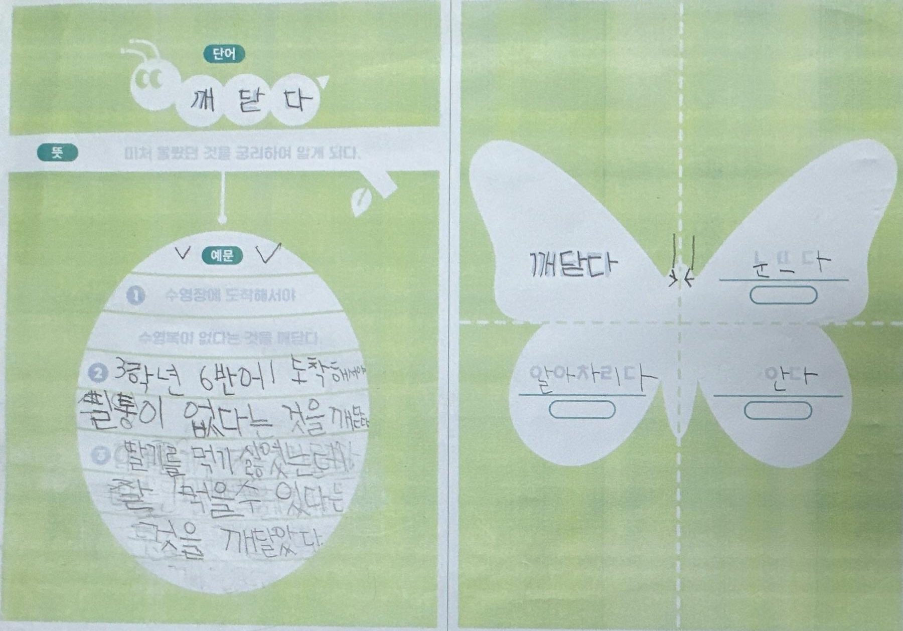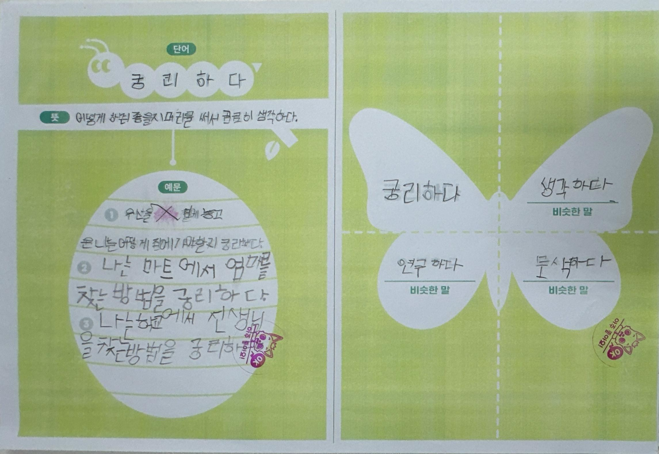 2) 번데기 단계: 목표단어를 나의 경험과 연결지어 문장을 만든다.