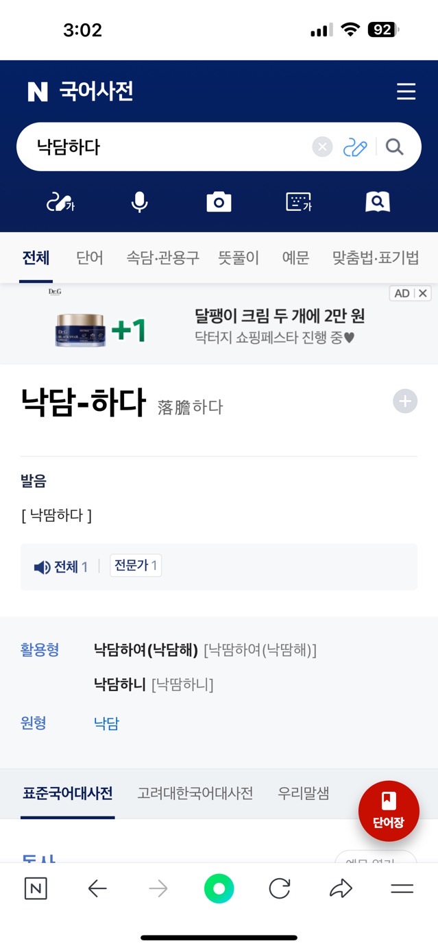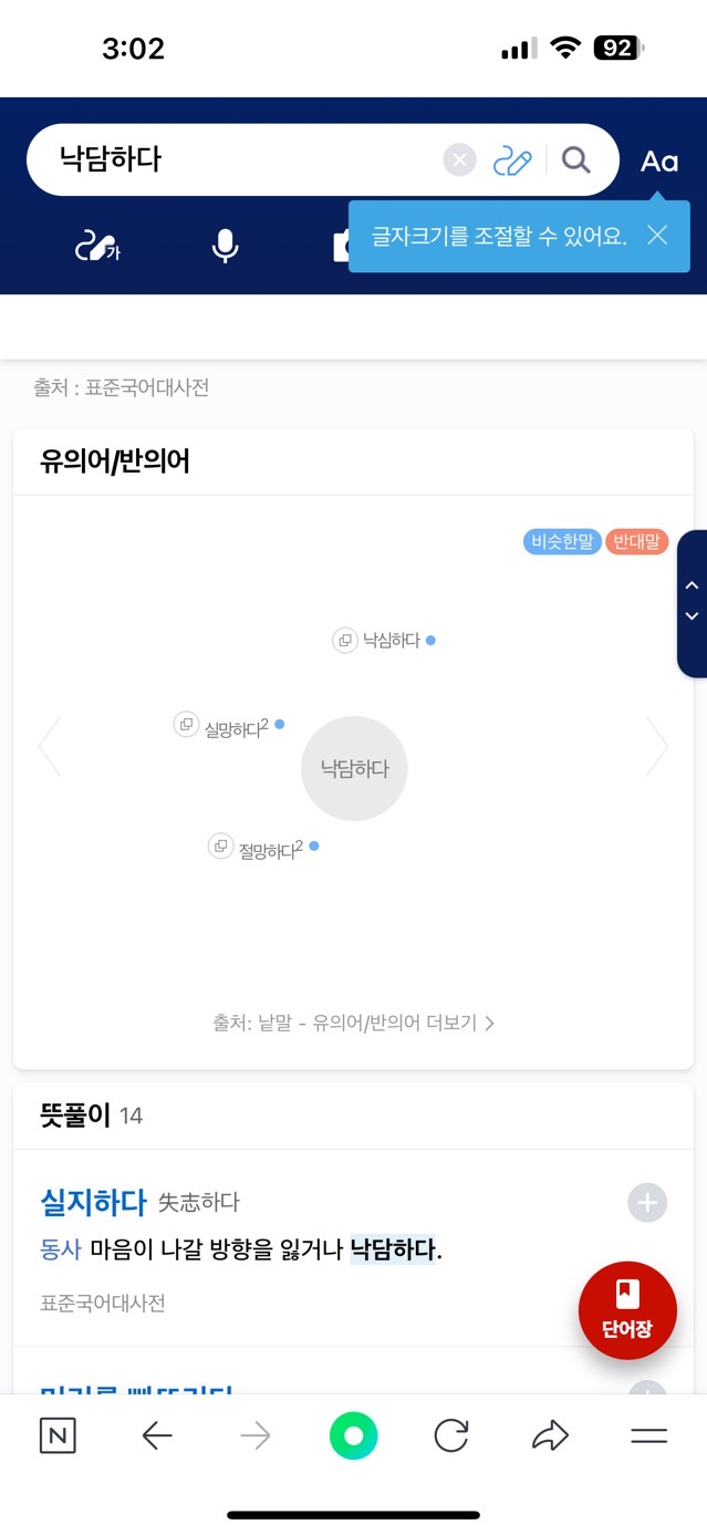 3) 나비 단계: 목표단어와 비슷한 말과 반대말을 네이버 사전에 검색해 찾아 써본다.