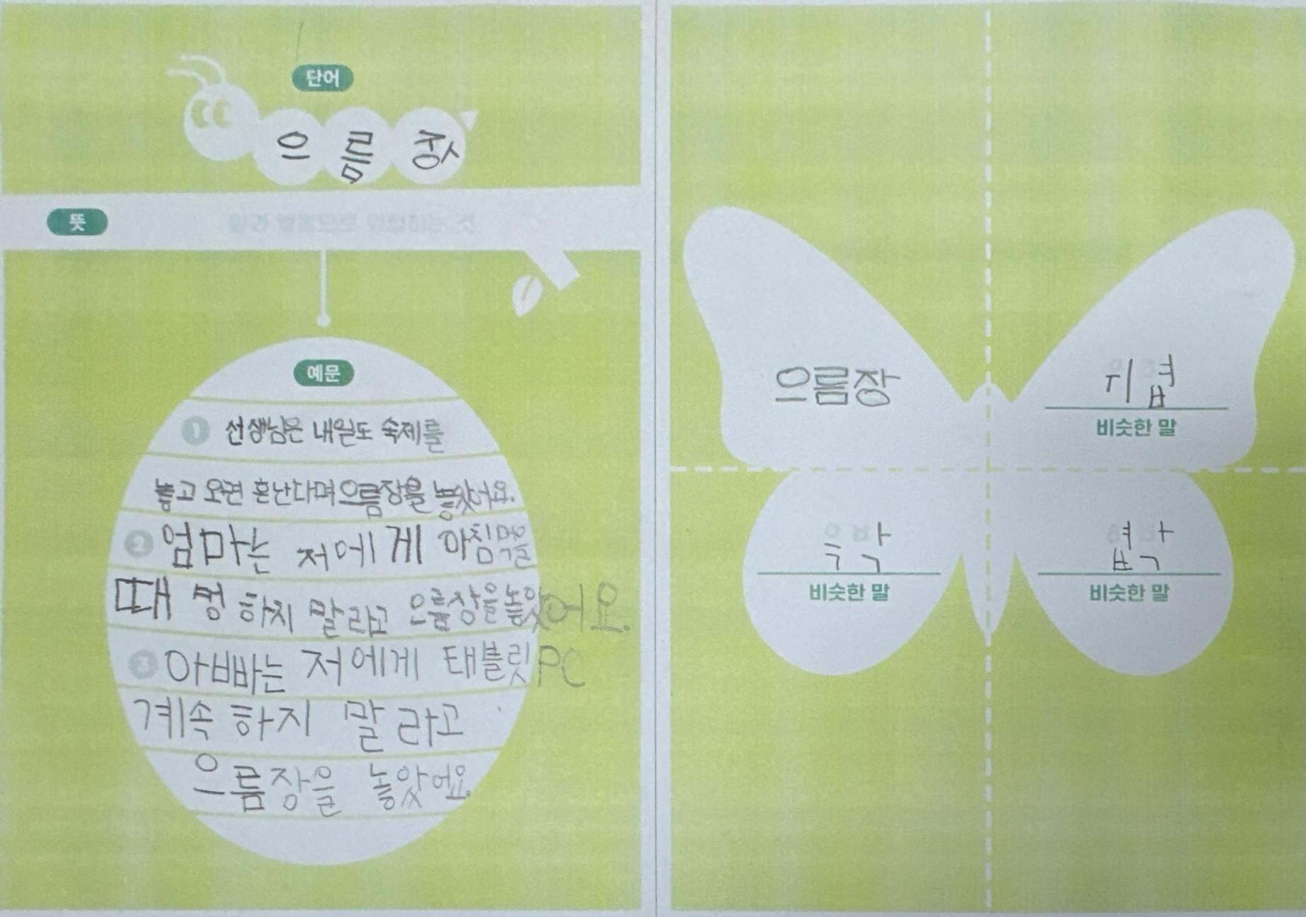 단데기 활동지를 숙제로 내준다.