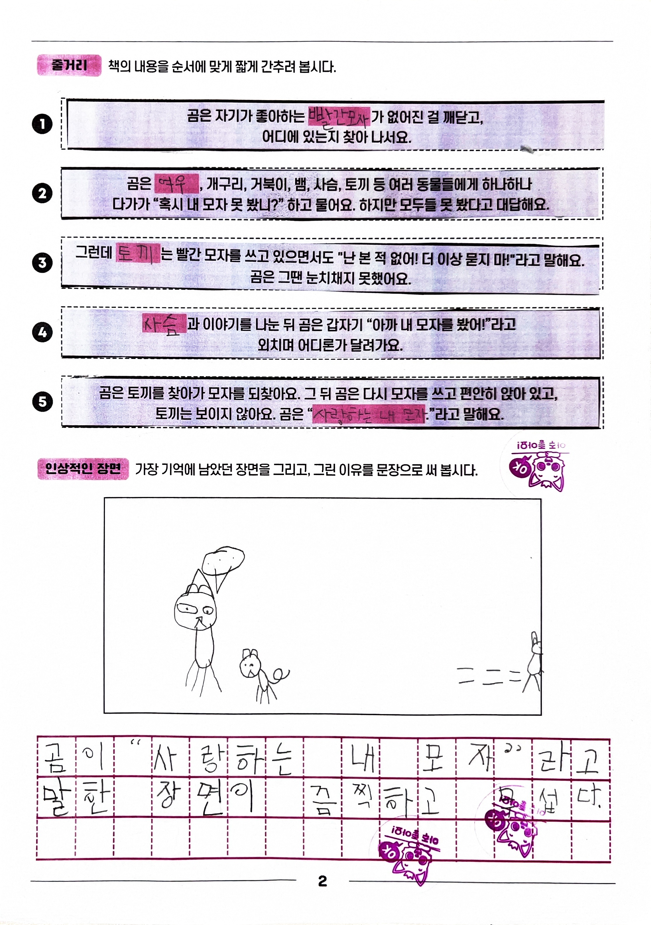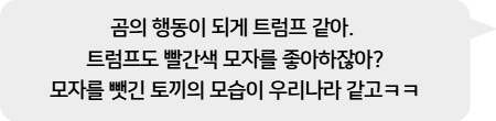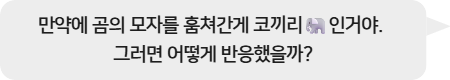 - 토끼가 곰의 모자를 가져간 이유가 무엇일지 상상해서 말해볼래?