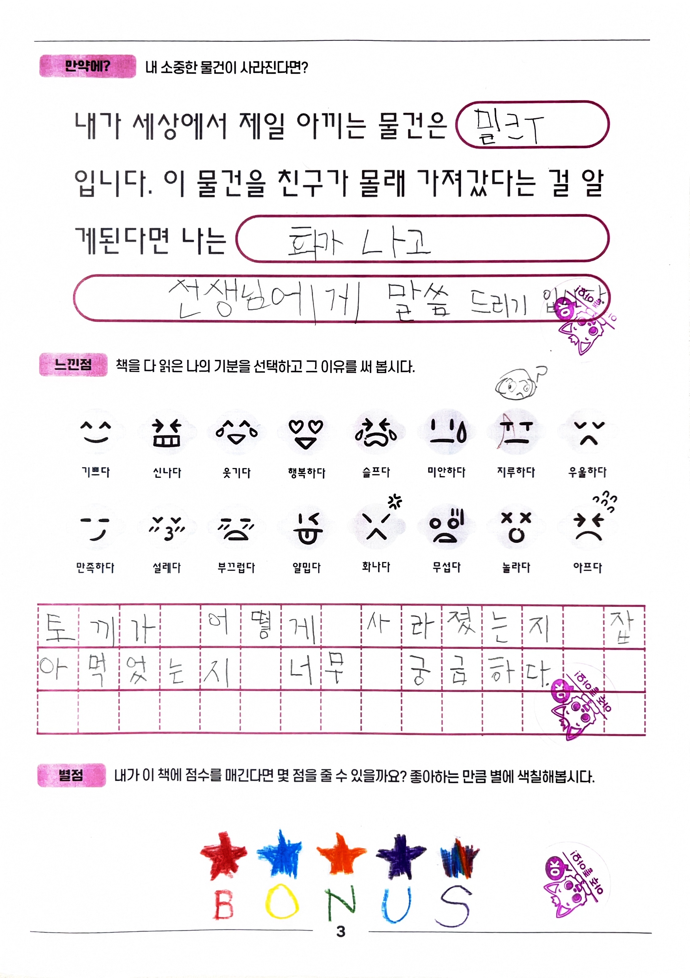 - 만약 네 모자를 누군가 몰래 가져갔다면, 너는 어떻게 행동할 것 같아?