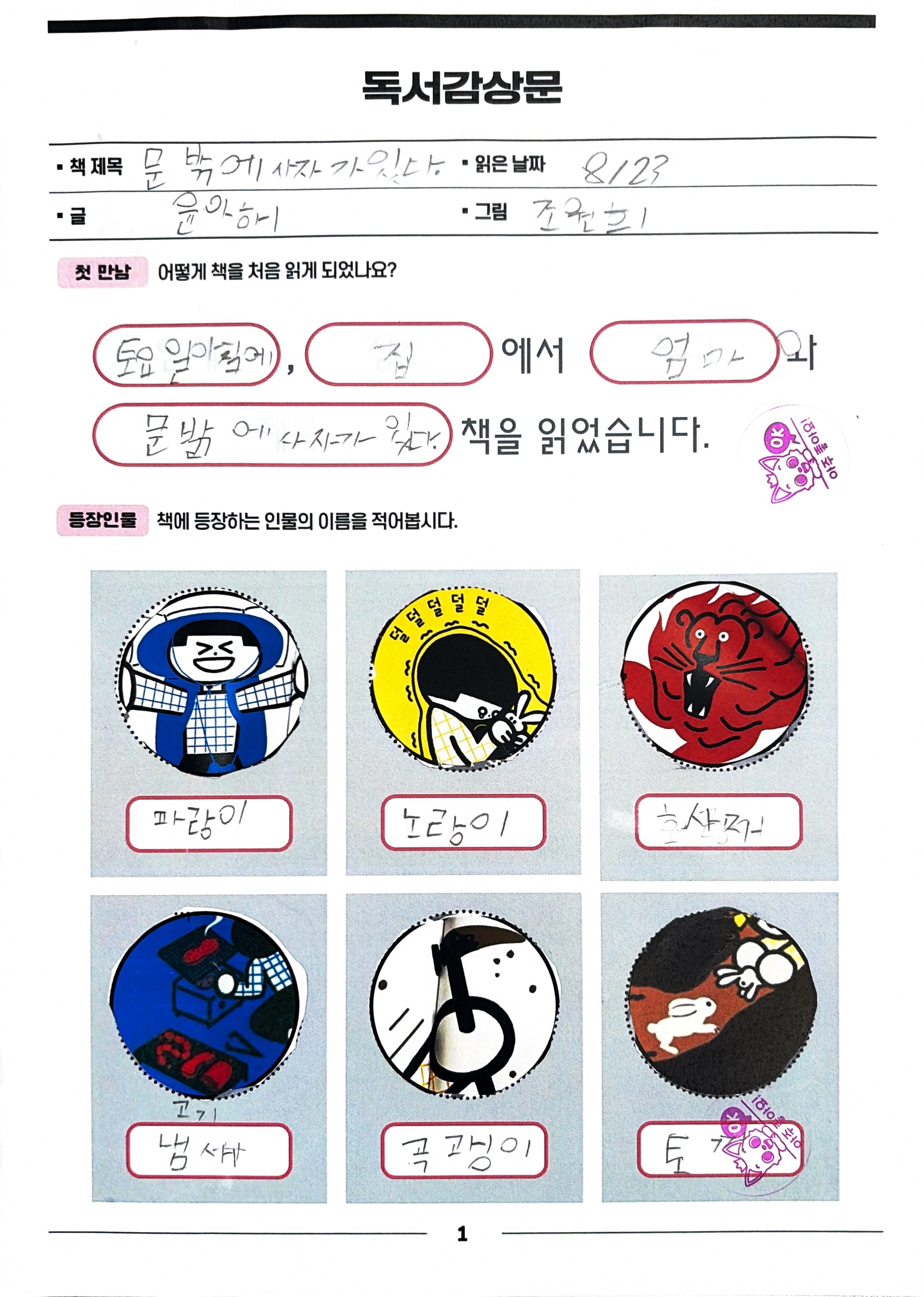 독서감상문(문밖에사자가있다).pdf1.13MB문밖에여전히사자가있다_독후활동지.pdf2.72MB재배포 및 상업적 이용 금지