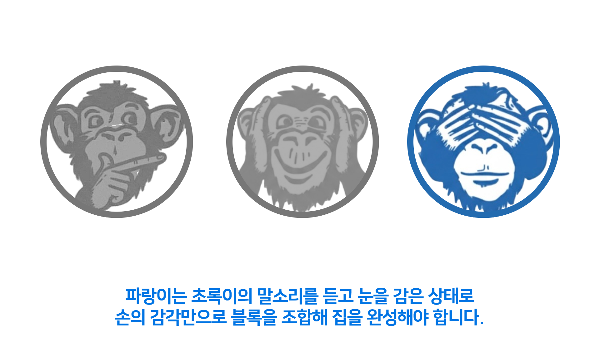시각장애 ➡ 소리를 듣고 블록의 모양을 손의 감각을 통해 파악해 집을 완성할 수 있음