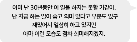 자기 삶을 하나의 ‘선’이 아니라 ‘여러 장면’으로 보고 있다는 뜻 같아요.지금은 분명 이 일이 좋아서